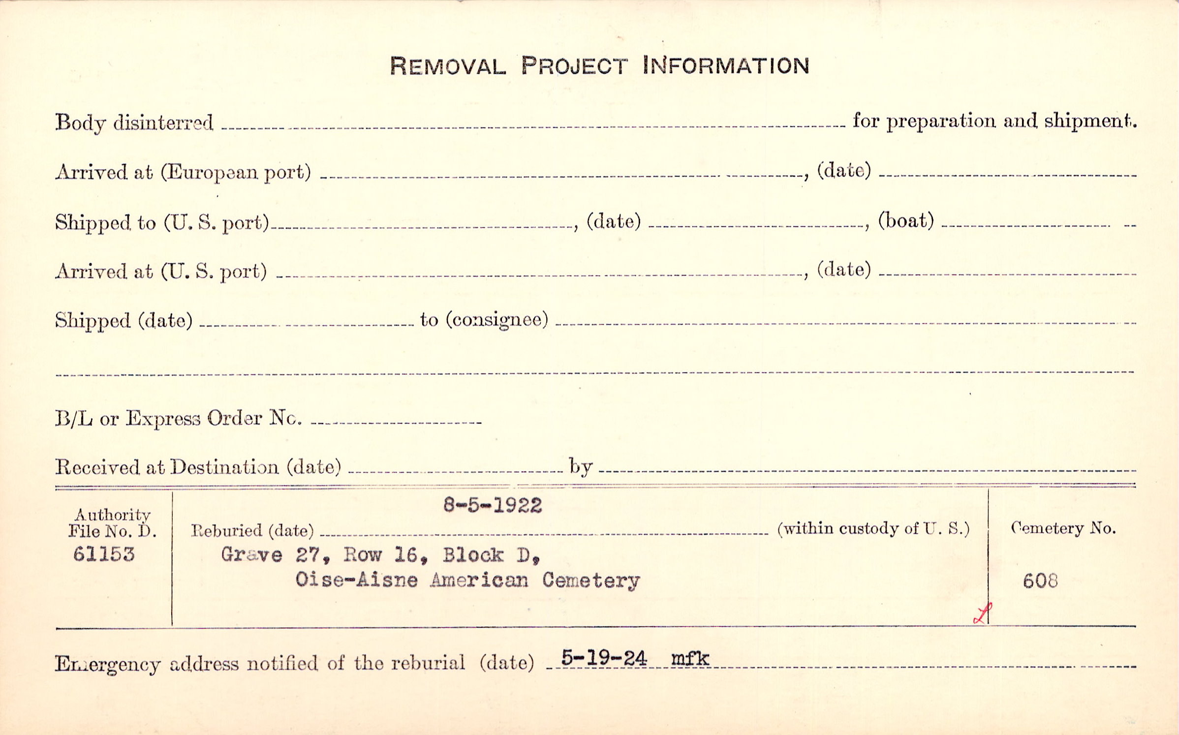 Grave 296, Amer. Battle Area Cty., Juvigny, Aisne