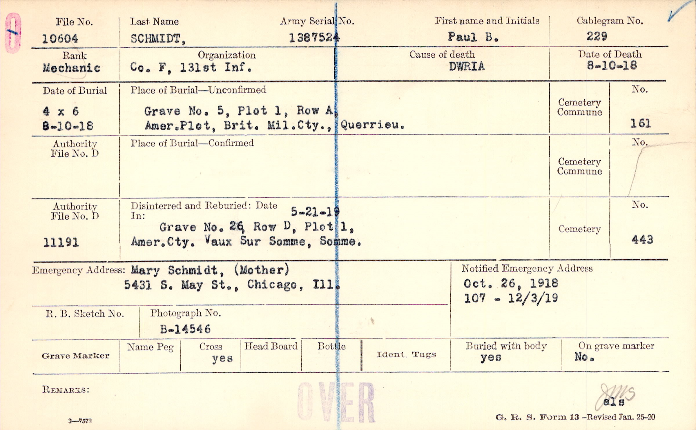 Mary Schmidt, (Mother), 5431 S. May St., Chicago, Ill.