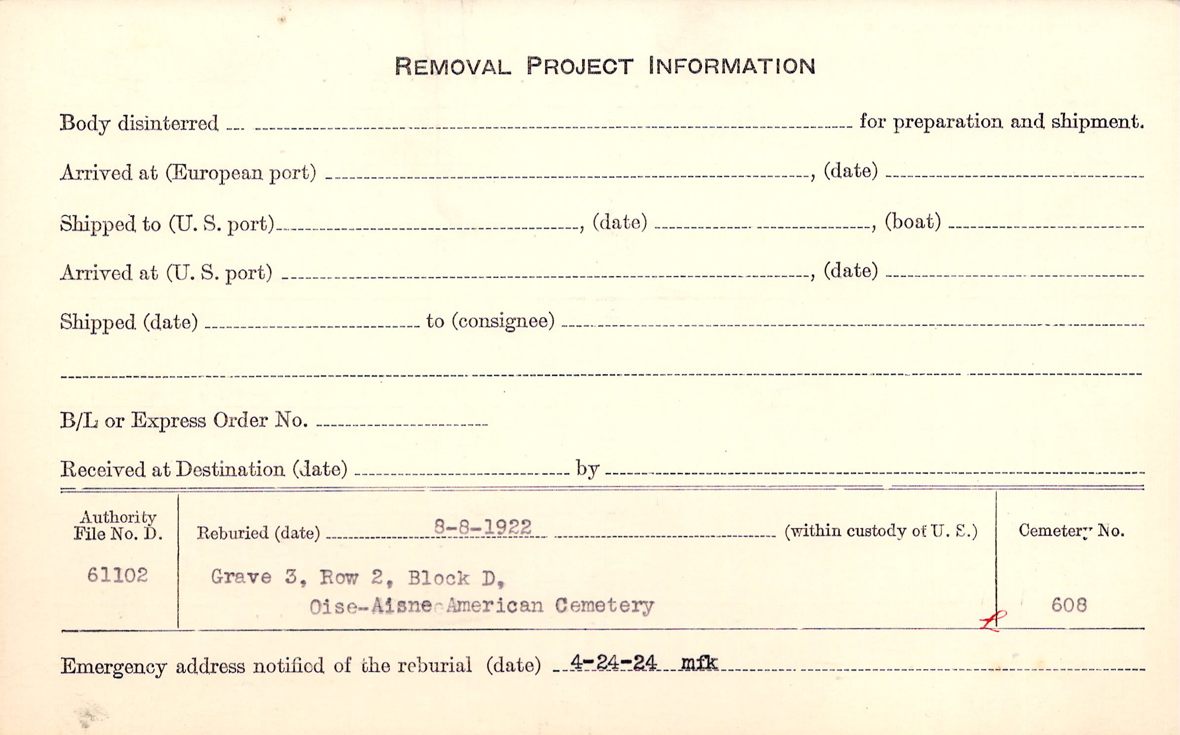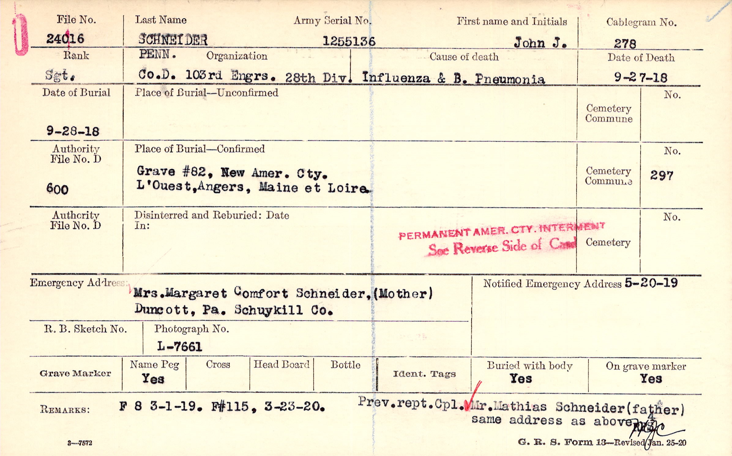 Grave #82, New Amer. Cty., L'Ouest, Angers, Maine et Loire.