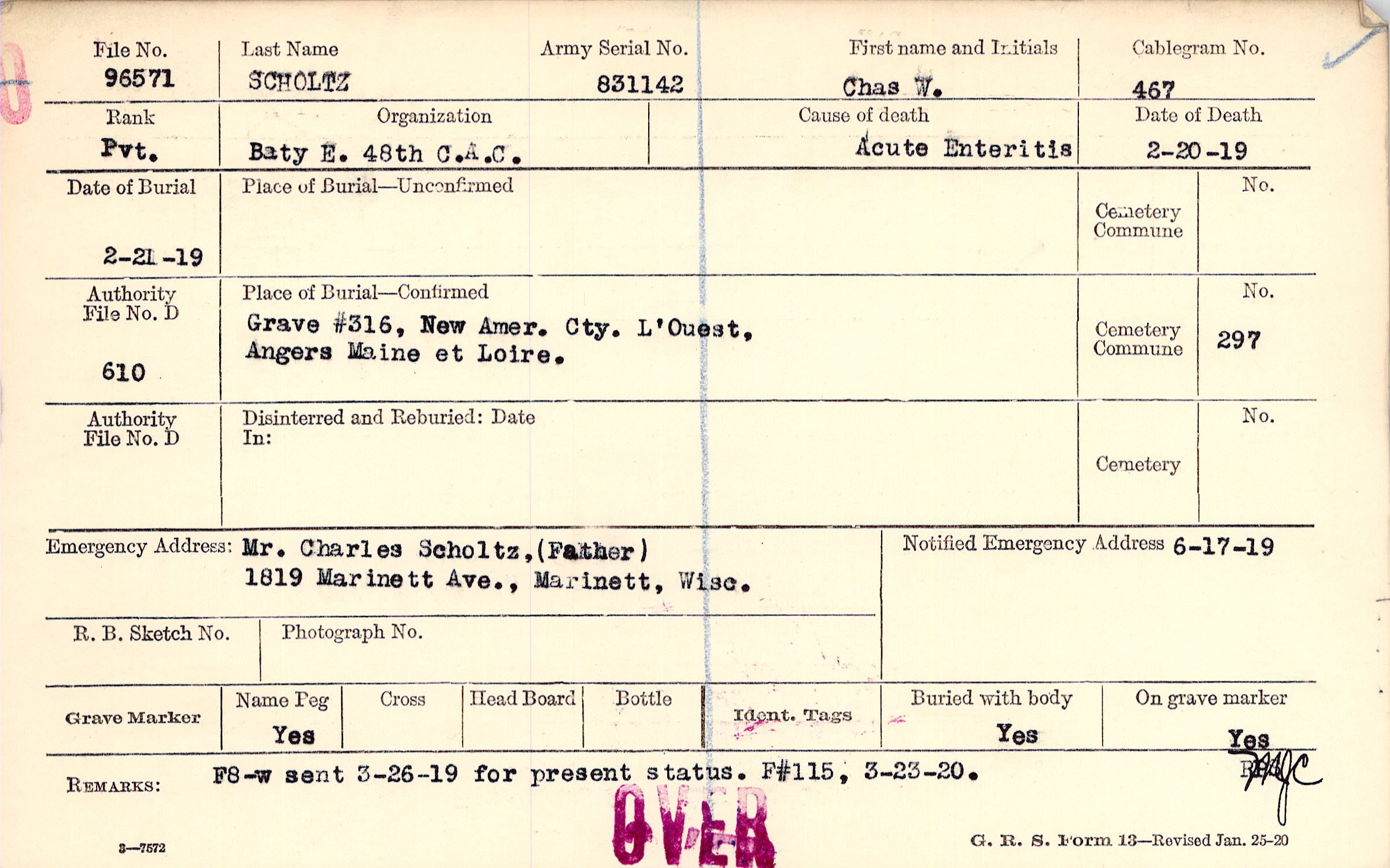 Grave #316, New Amer. Cty., L'Ouest, Angers, Maine et Loire