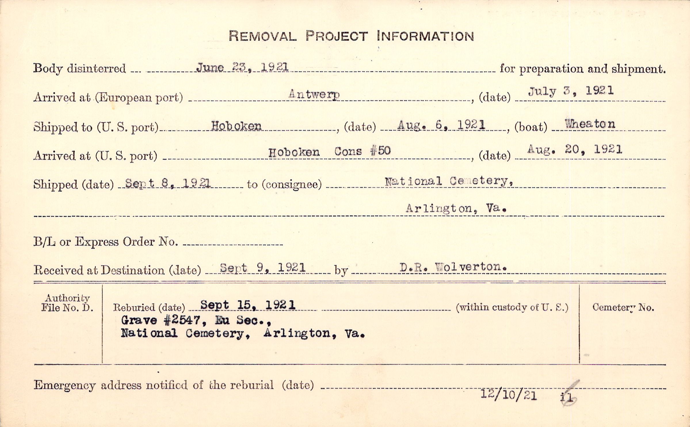 Grave 62, Section 21, Plot 2, Argonne American Cemetery, Romagne-sous-Montfaucon, Meuse