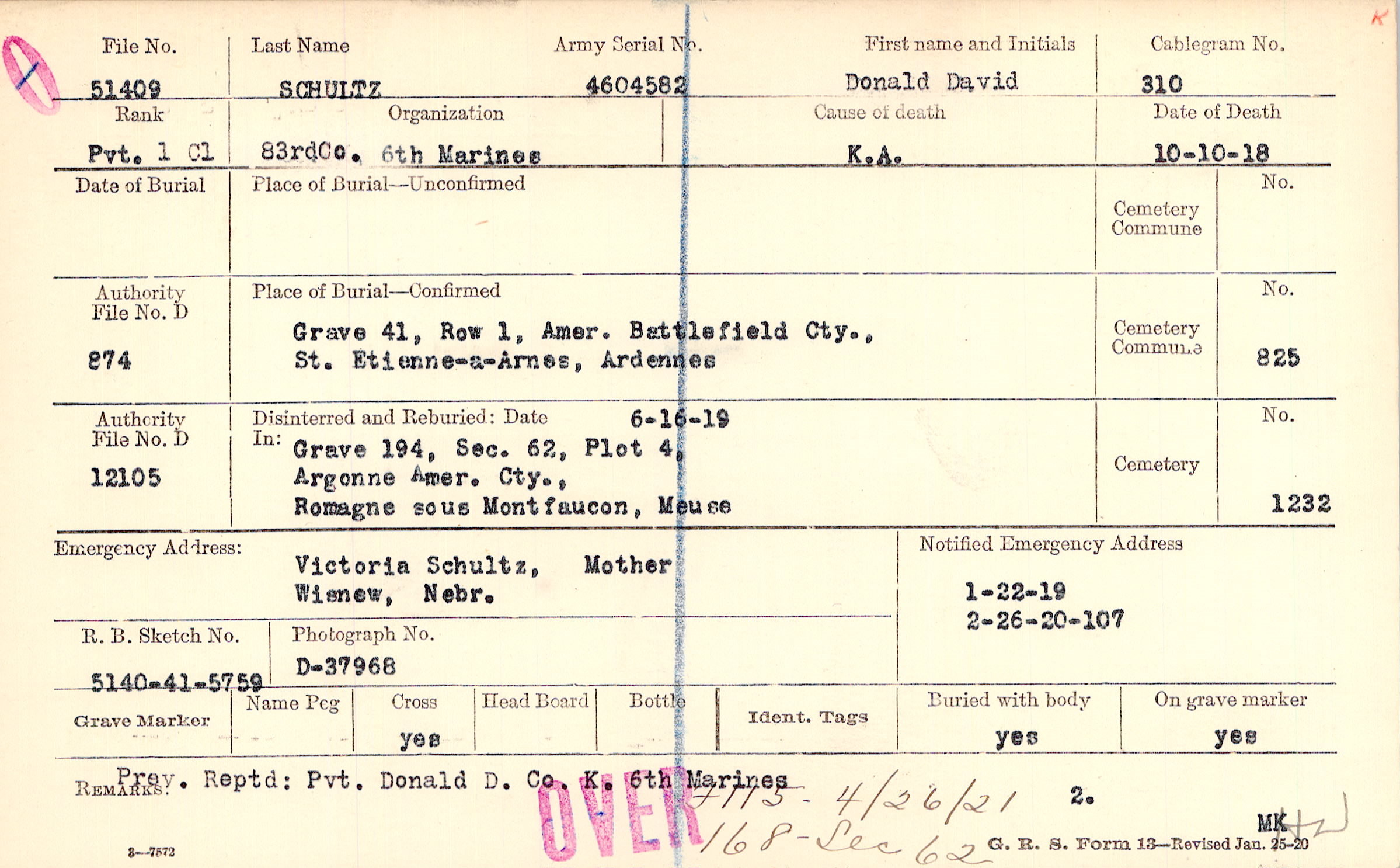 Prev. Reptd: Pvt. Donald D. Co. K, 6th Marines, F115 - 4/26/21 168 - Sec 62