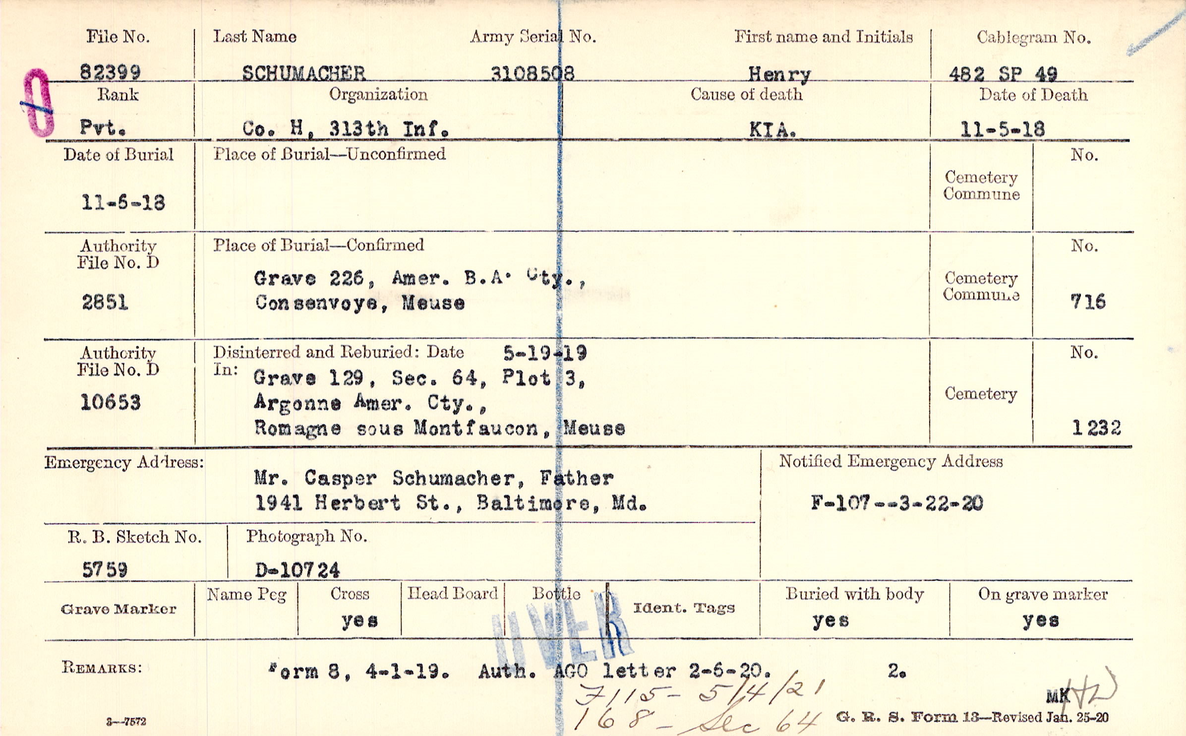 Grave 226, Amer. B/A Cty., Consenvoye, Meuse