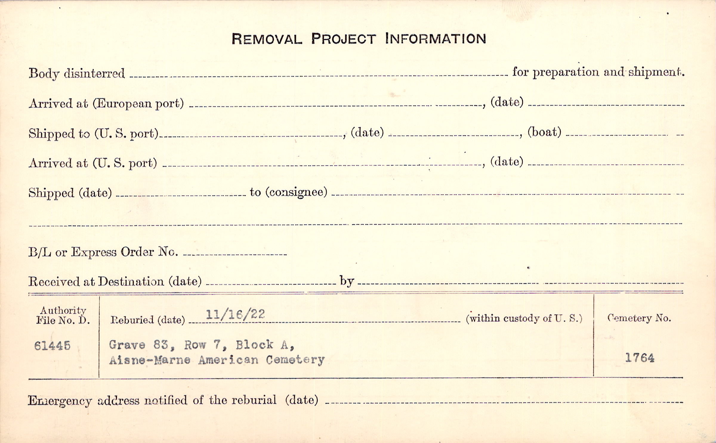 | Permanent Burial in Foreign Cemetery |