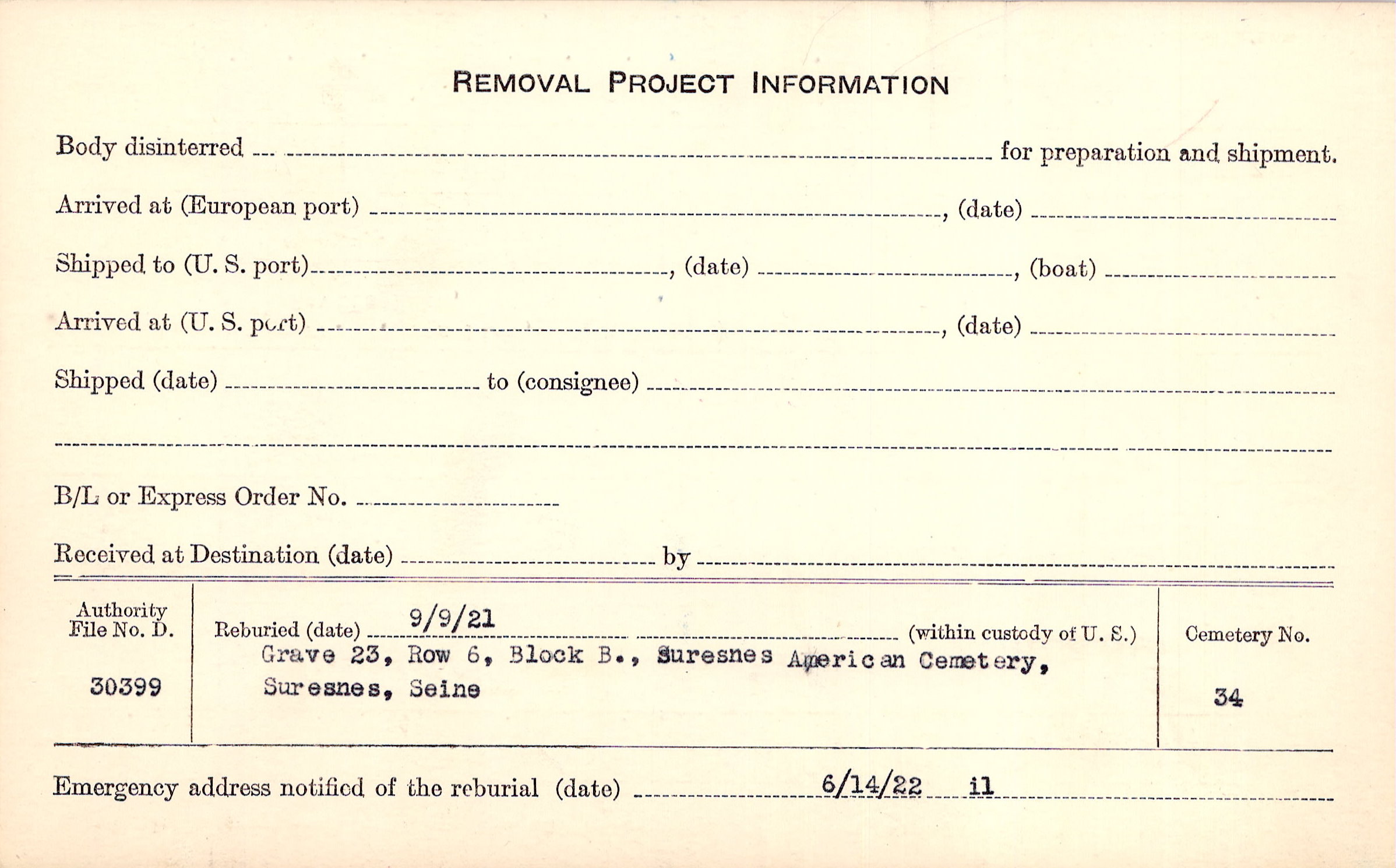 Grave 577,American Cemetery of Suresnes (Paris), Seine