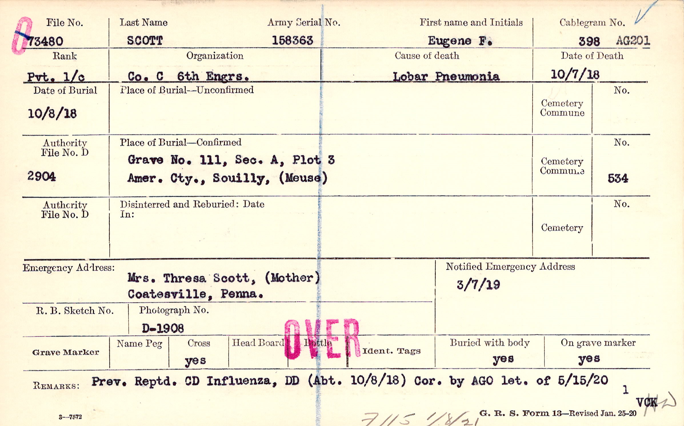 Prev. Reptd. CD Influenza, DD (Abt. 10/8/18) Cor. by AGO let. of 5/15/20, F115 1/8/21