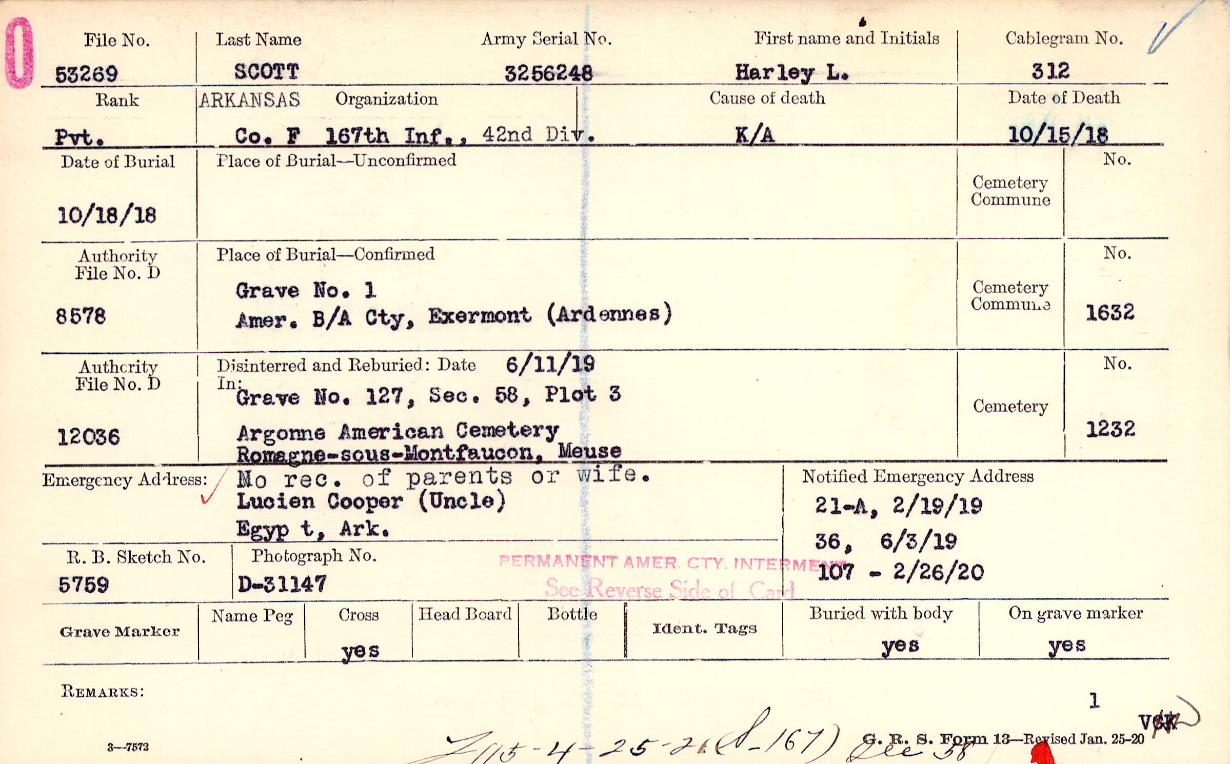 Grave 1, Amer. B/A Cty., Exermont, Ardennes