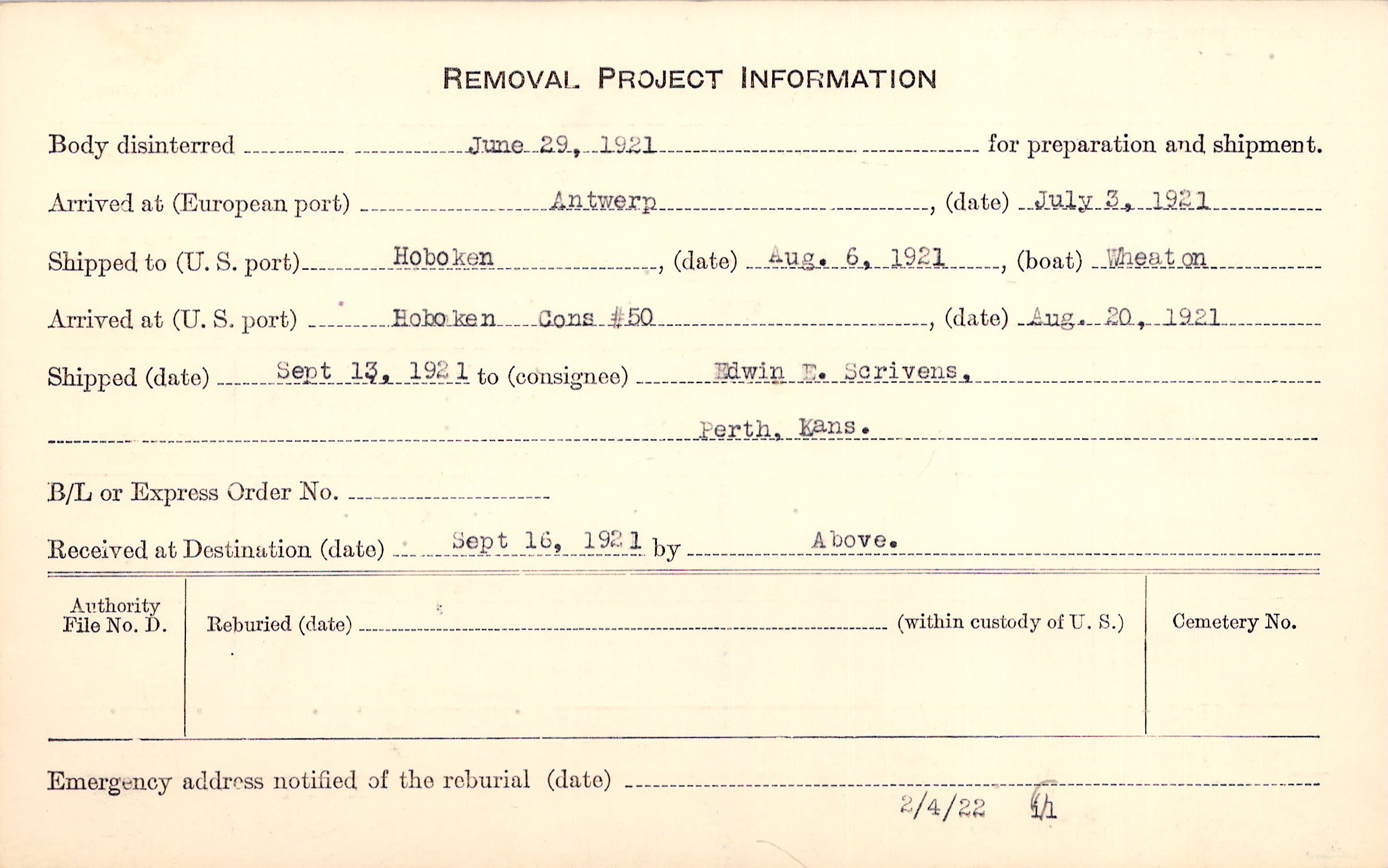 E. E/ Scrivens, father,, RFD #4, Perth, Kansas .