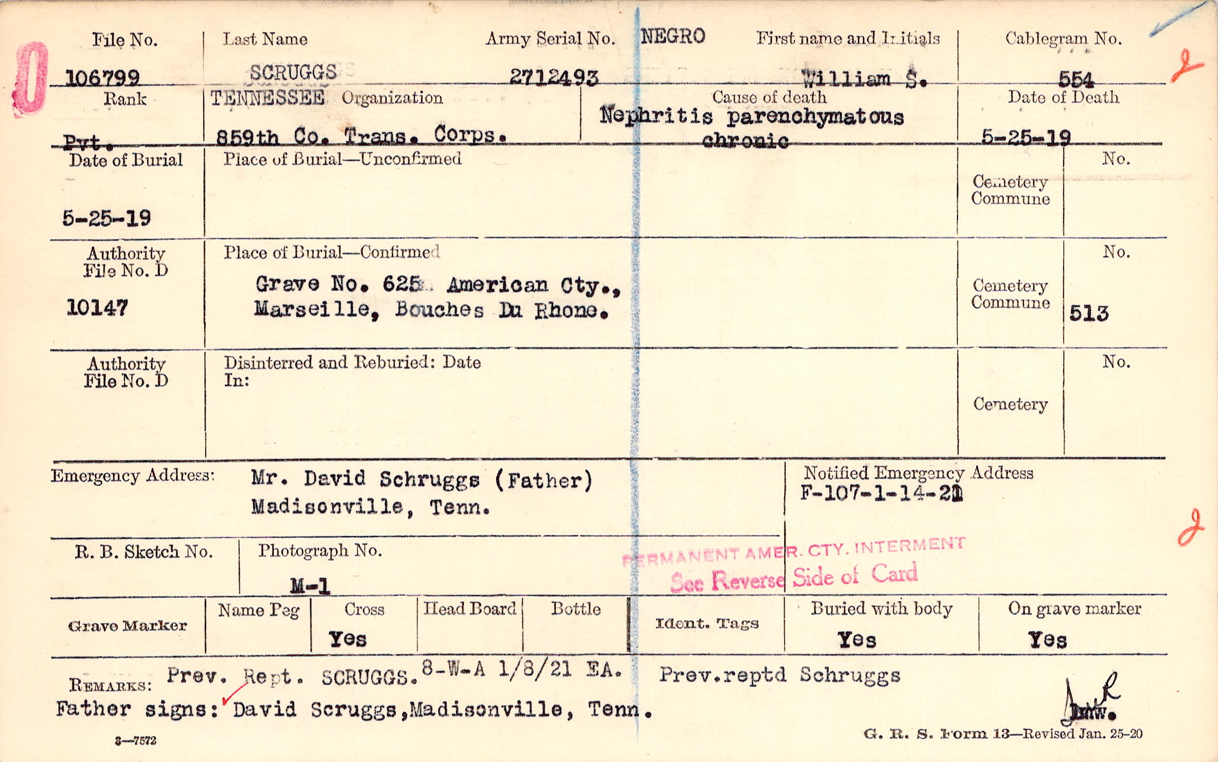 Prev. Rept. SCRUGGS. Prev. Reptd Schruggs Father signs: David Scruggs, Madisonville, Tenn., 8_W_A 1/8/21 EA.