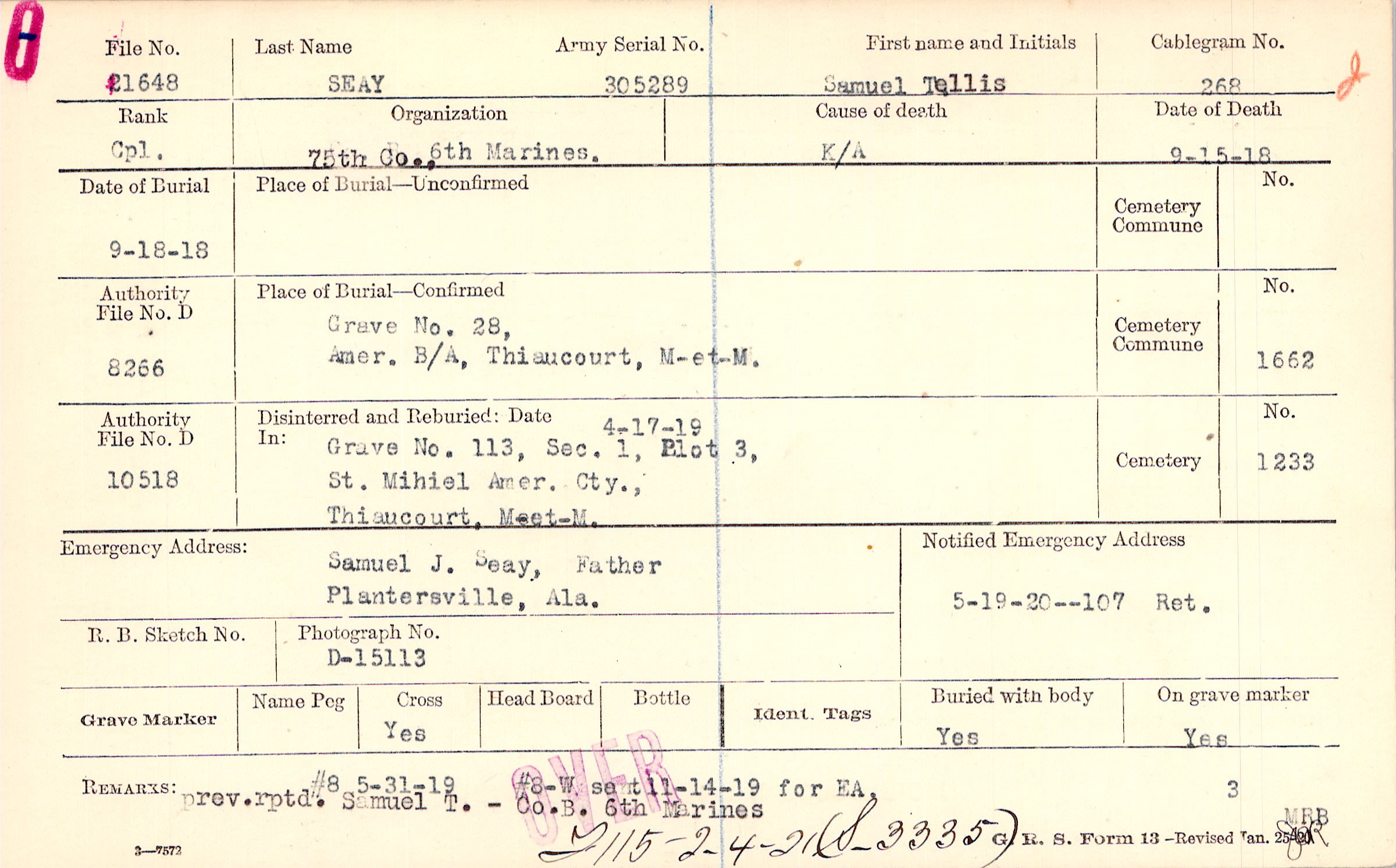 5/19/1920 107 Ret