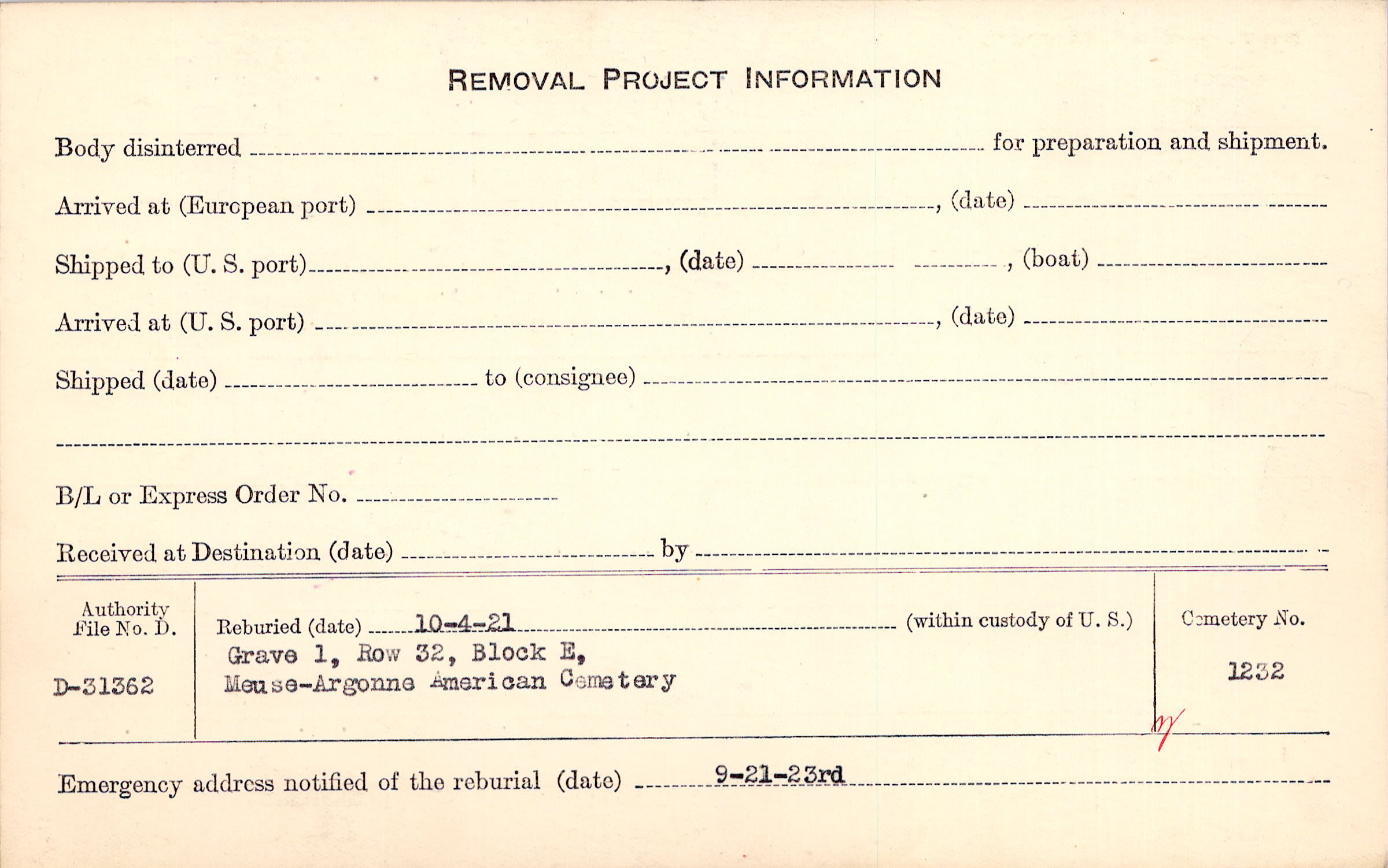 Grave 105, Section 83, Plot 3, Argonne American Cemetery, Romagne-sous-Montfaucon, Meuse