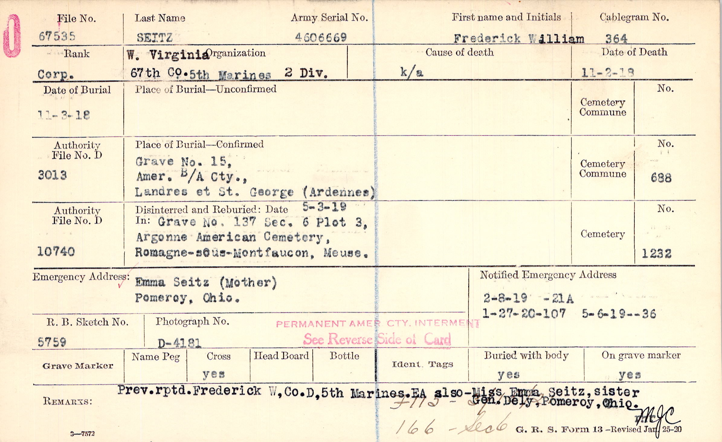 Grave 15, Amer. B/A Cty., Landres et St. George, Ardennes