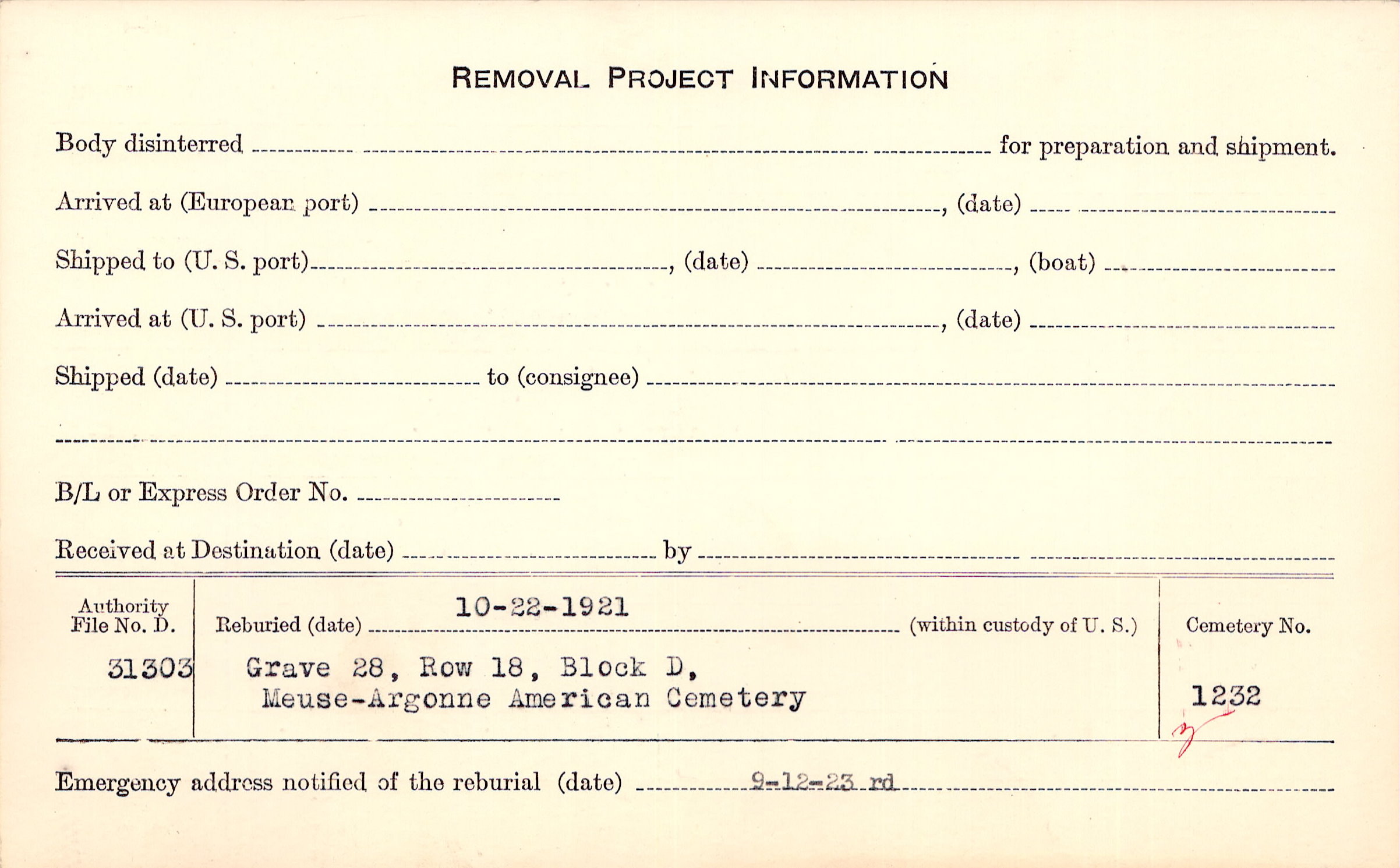 | Permanent Burial in Foreign Cemetery |