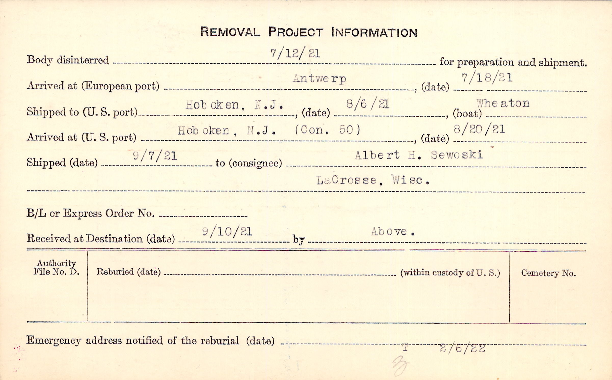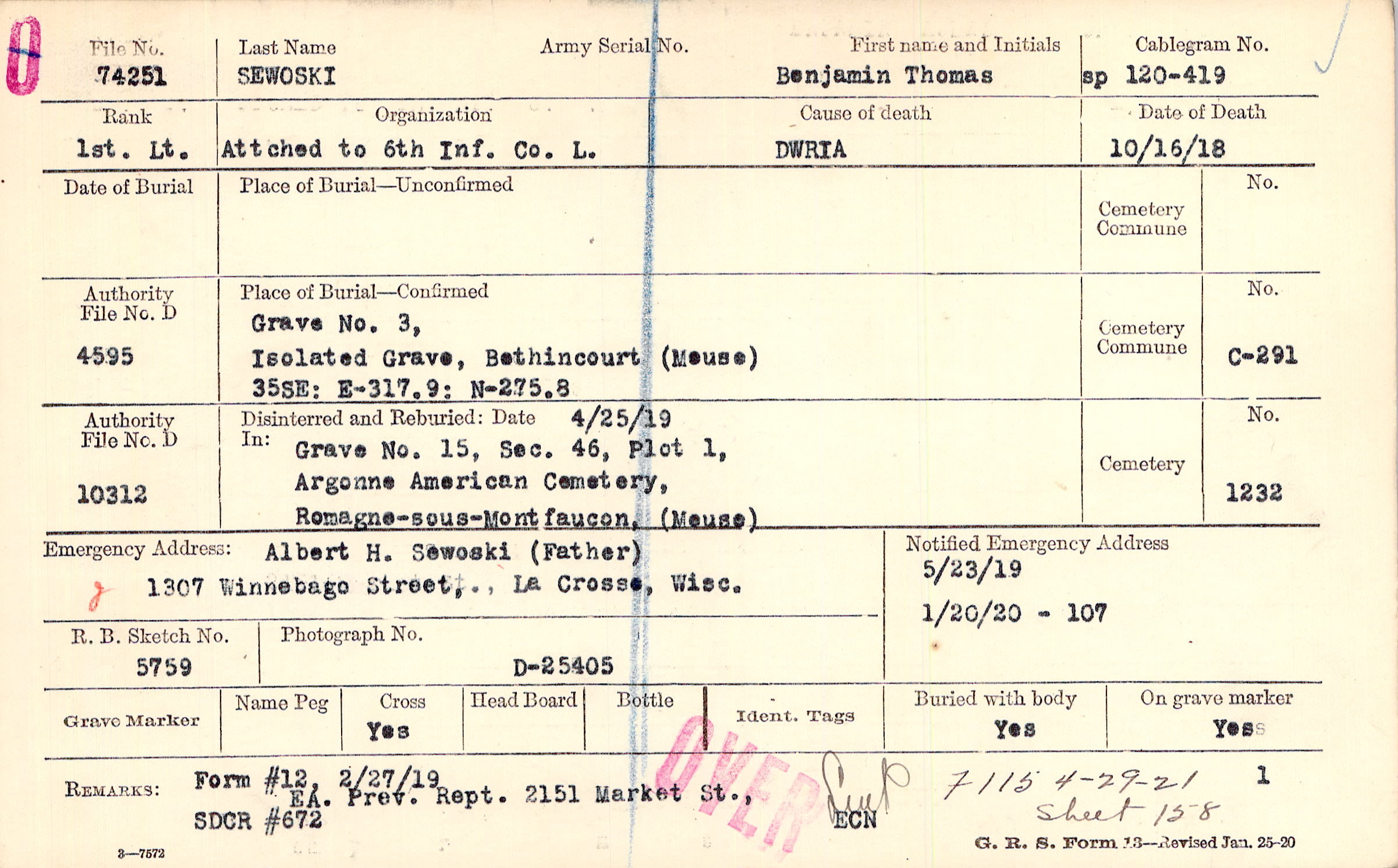 Albert H. Sewoski (Father), 1307 Winnebago Street, La Crosse, Wisc., g