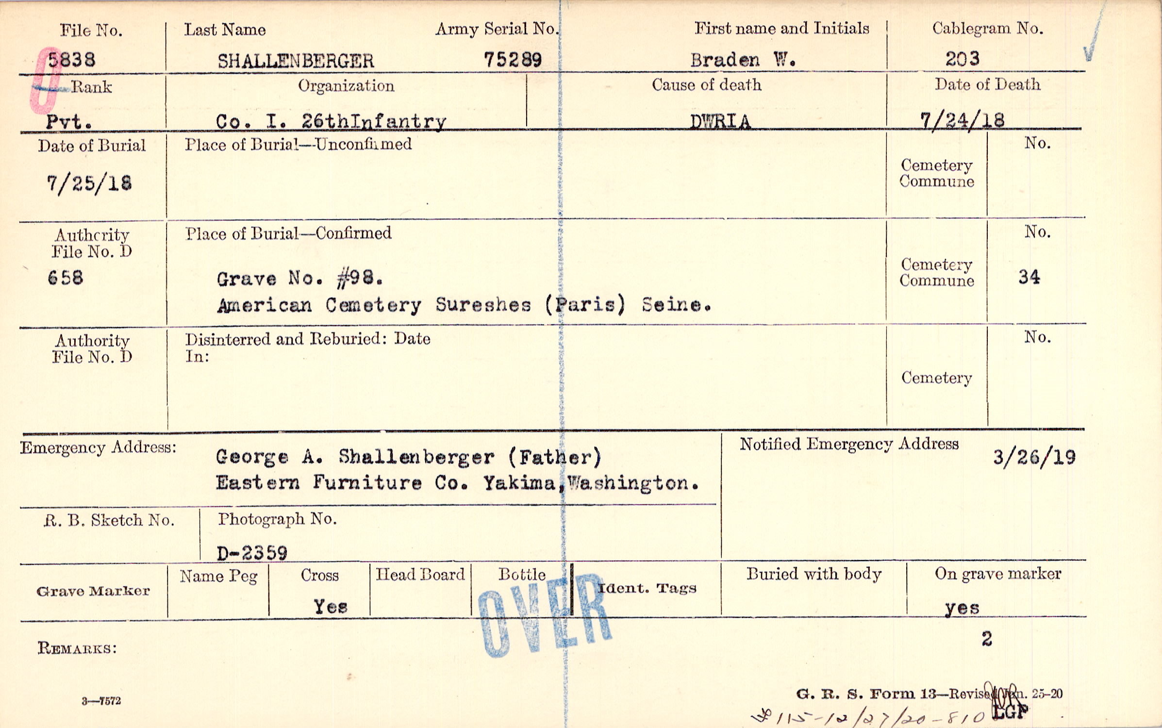 Grave #98., American Cemetery Sureshes (Paris) Seine.