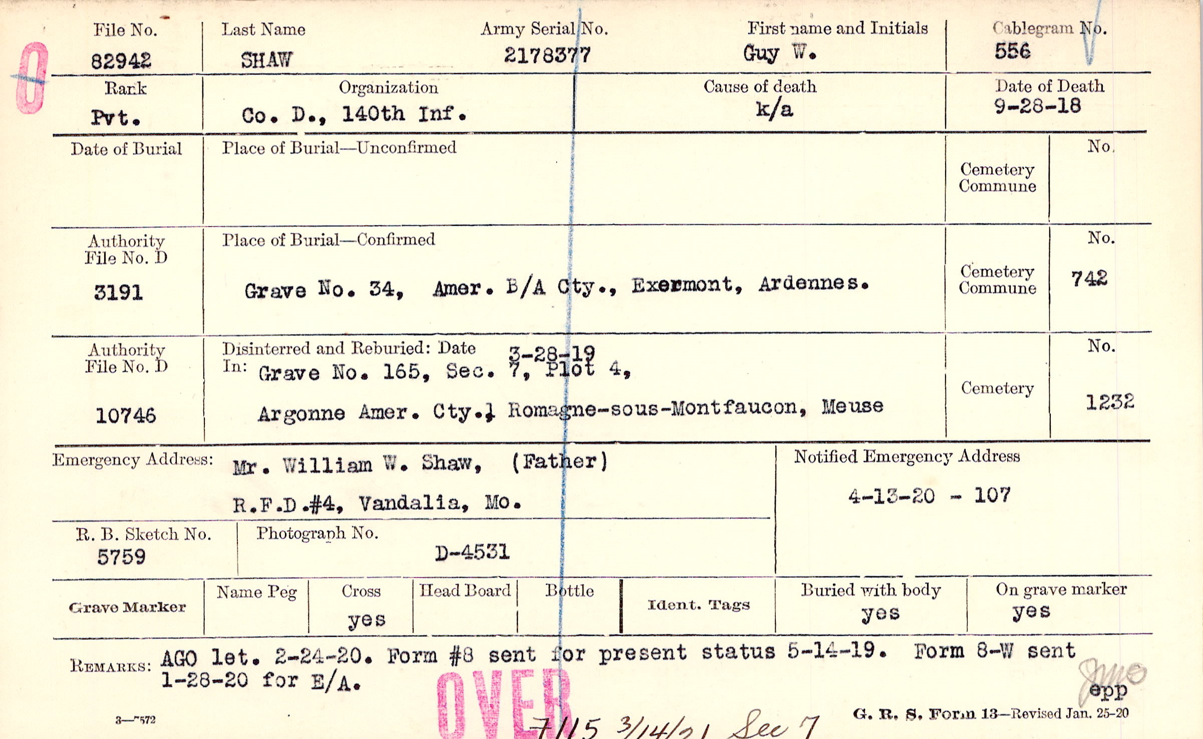 Grave 34, Amer. B/A Cty., Exermont, Ardennes.