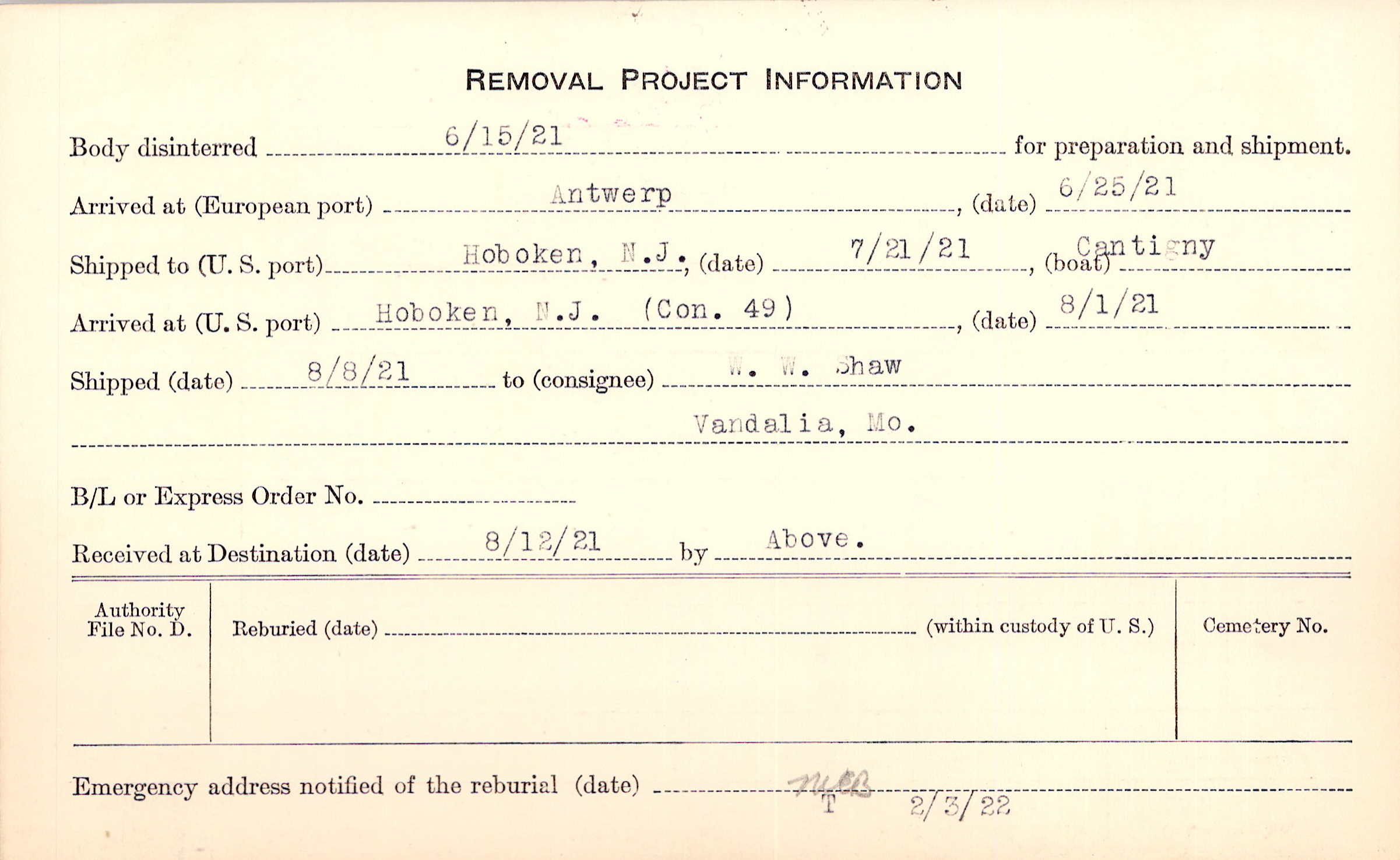 Mr. William W. Shaw, (Father), R.F.D.#4, Vandalia, Mo.