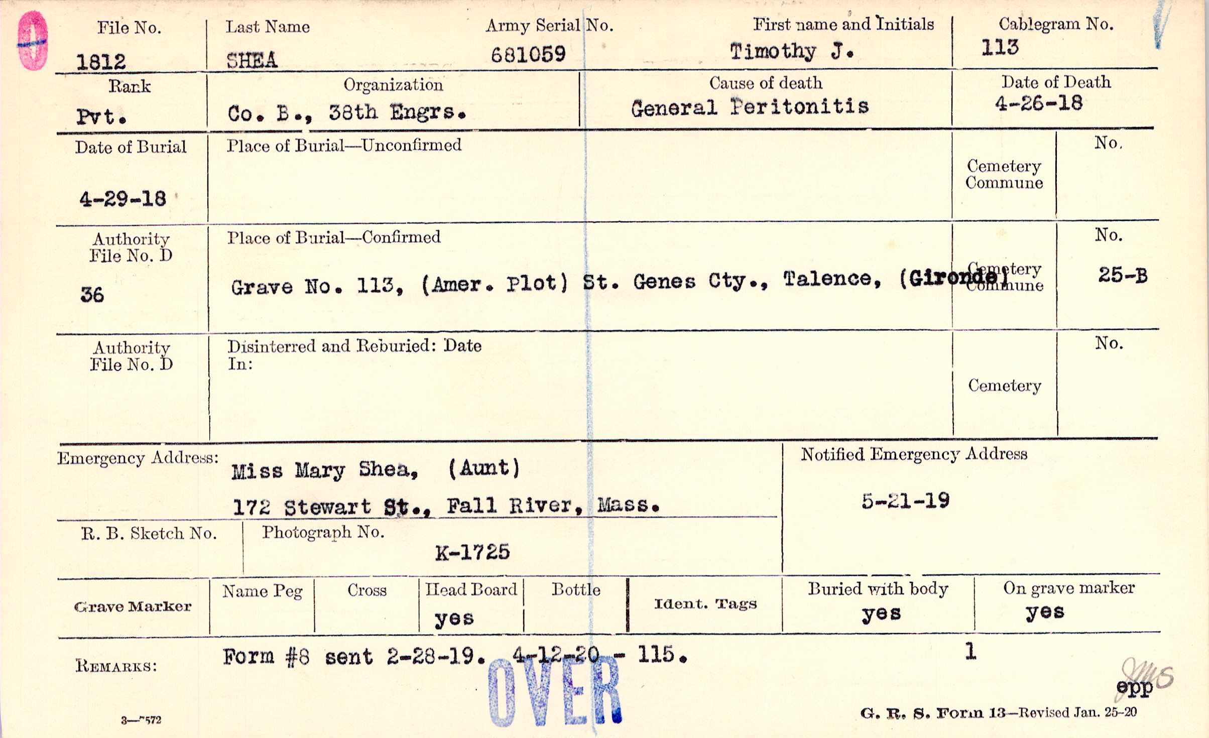 Grave 113, (Amer. Plot), St. Genes Cty., Talence, (Gironde)