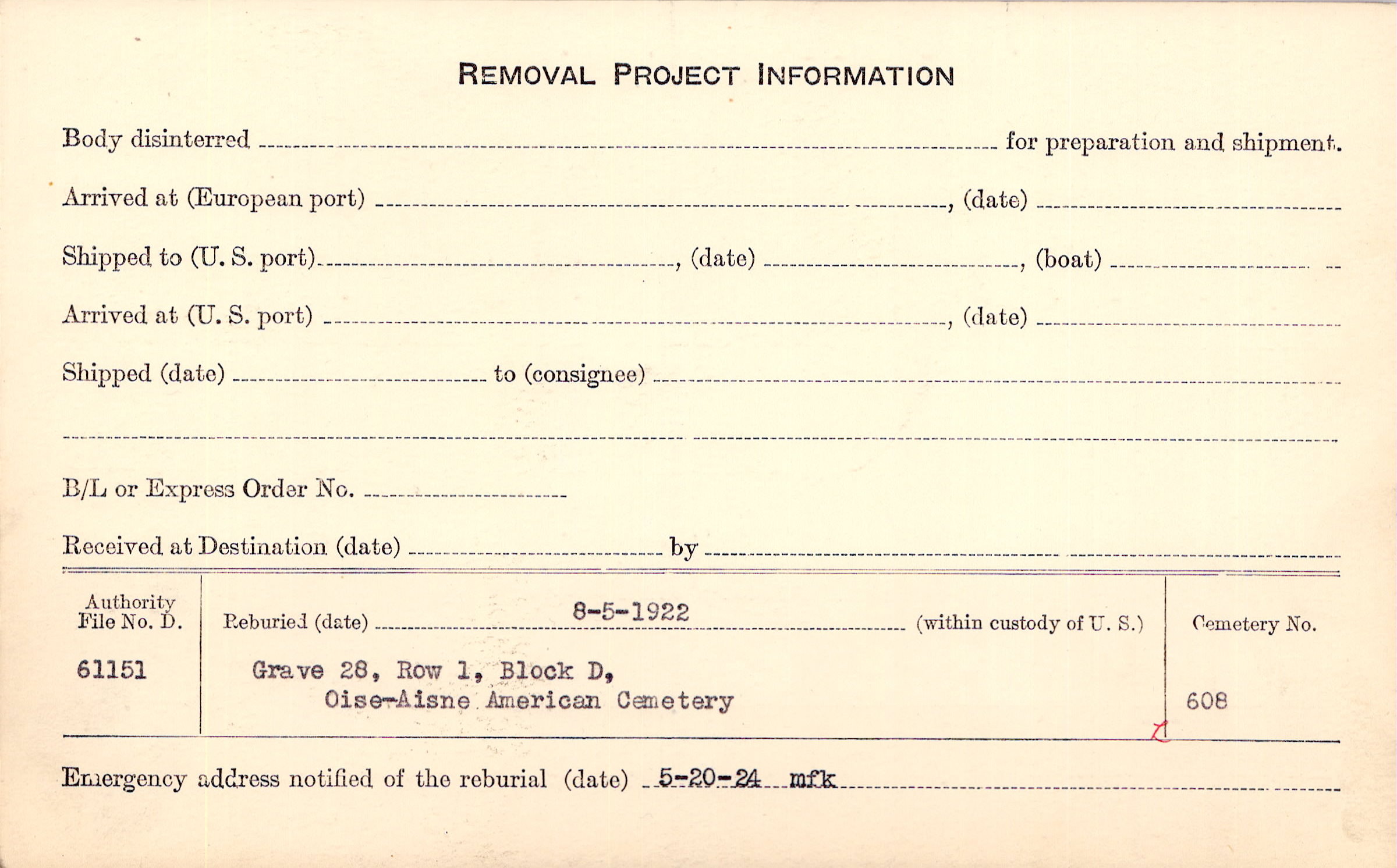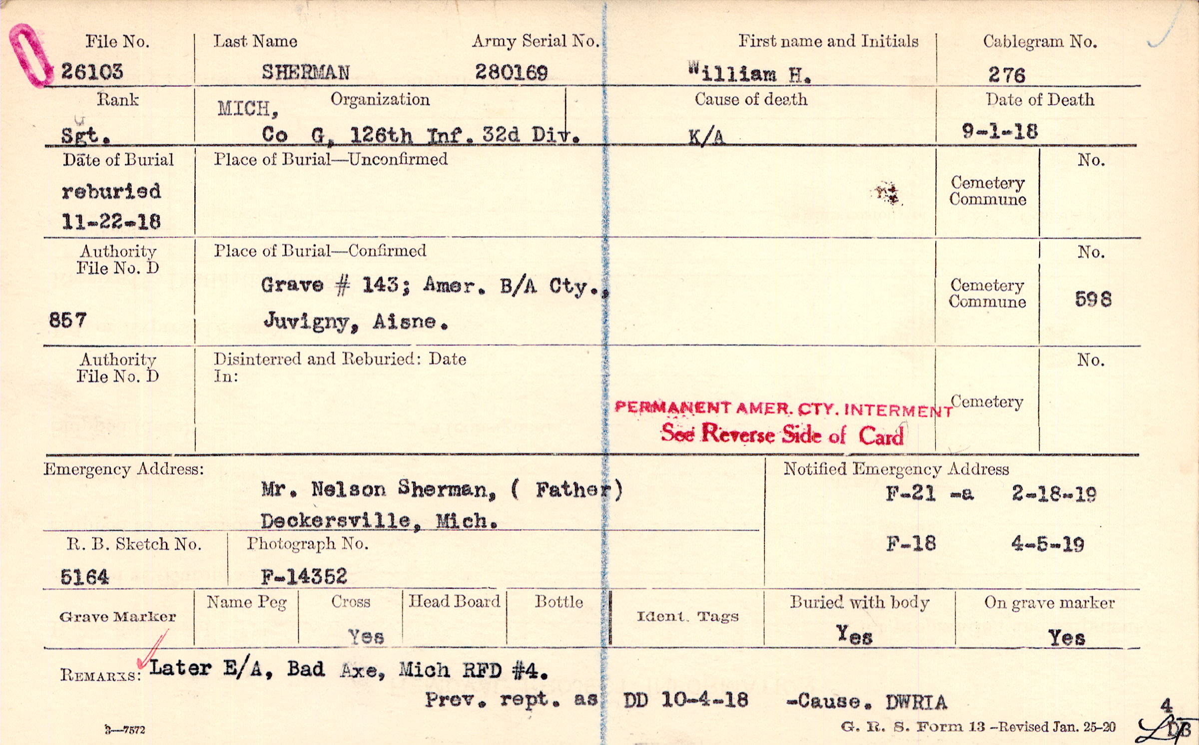 Grave #143, Amer. B/A Cty., Juvigny, Aisne