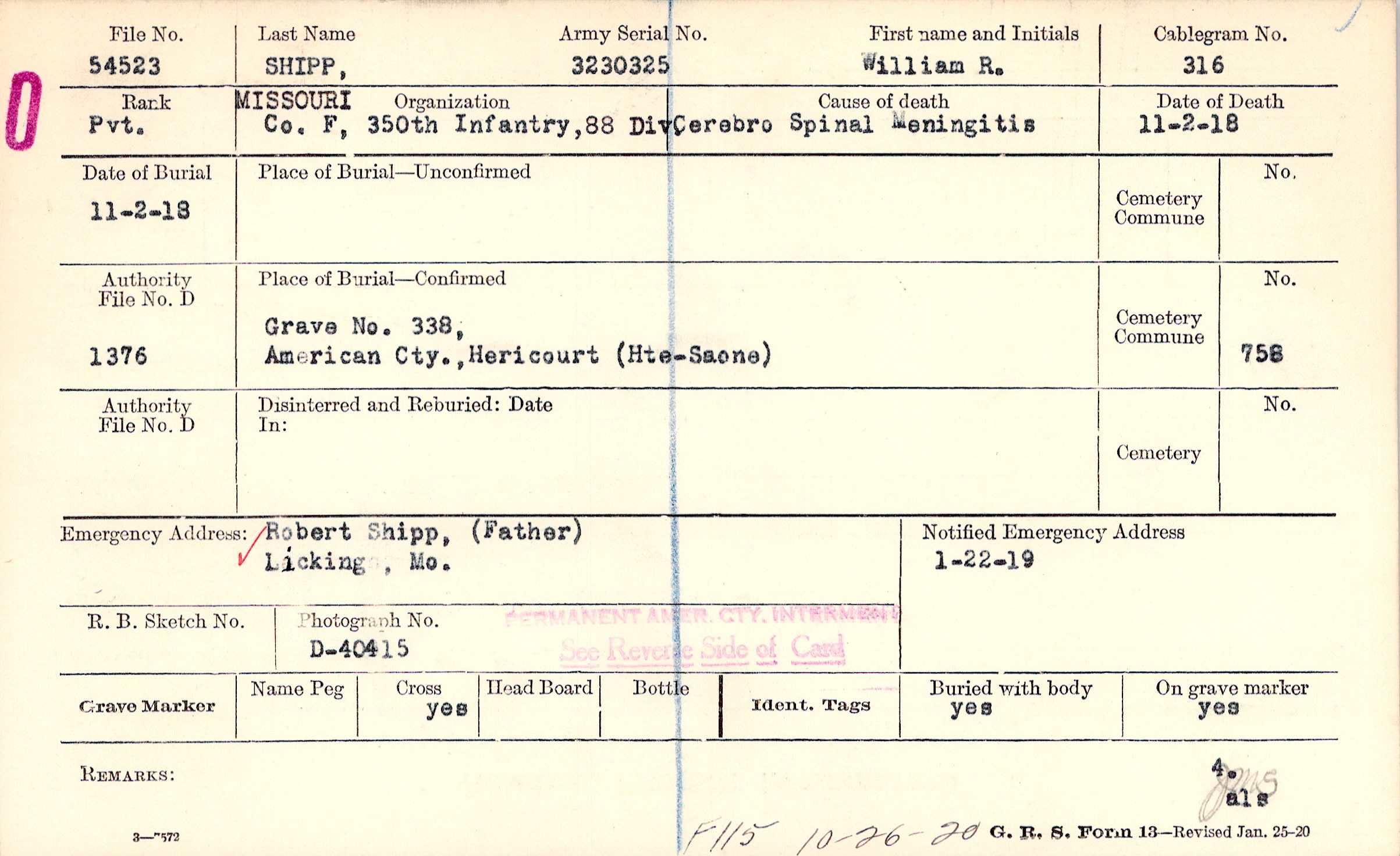 Grave 338, American Cty., Hericourt, Hte-Saone