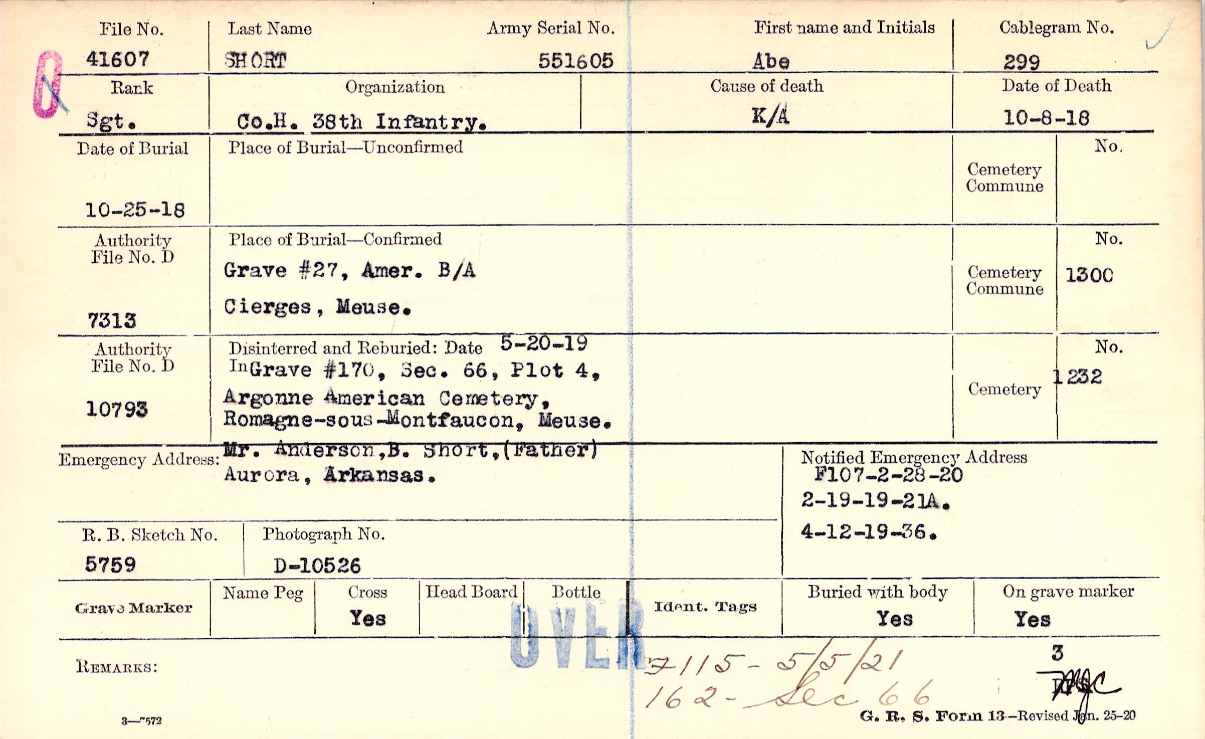 Grave #27, Amer. B/A, Cierges, Meuse.