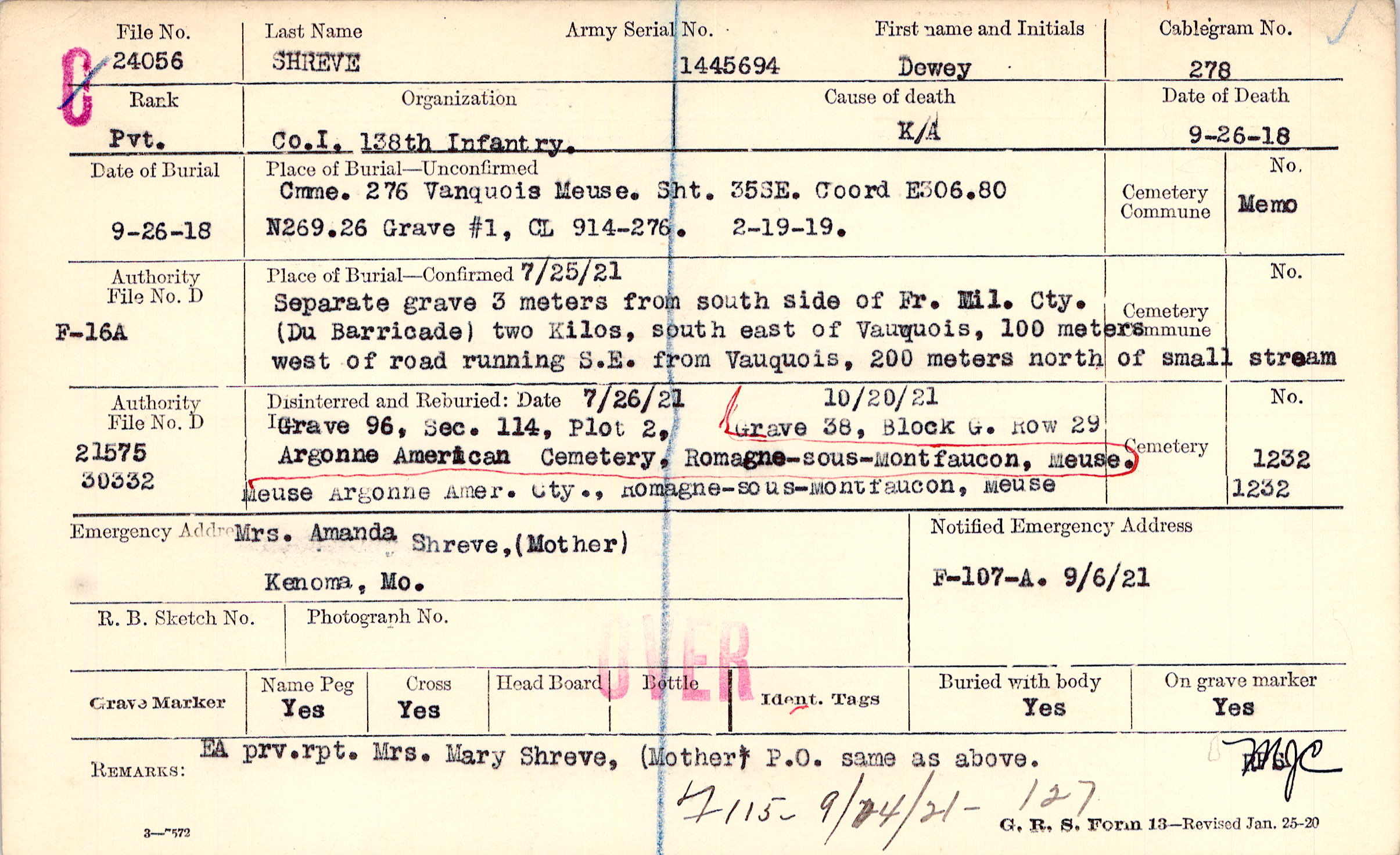 EA prv. rpt. Mrs. Mary Shreve, (Mother) P.O. same as above., F115 - 9/14/21 - 127