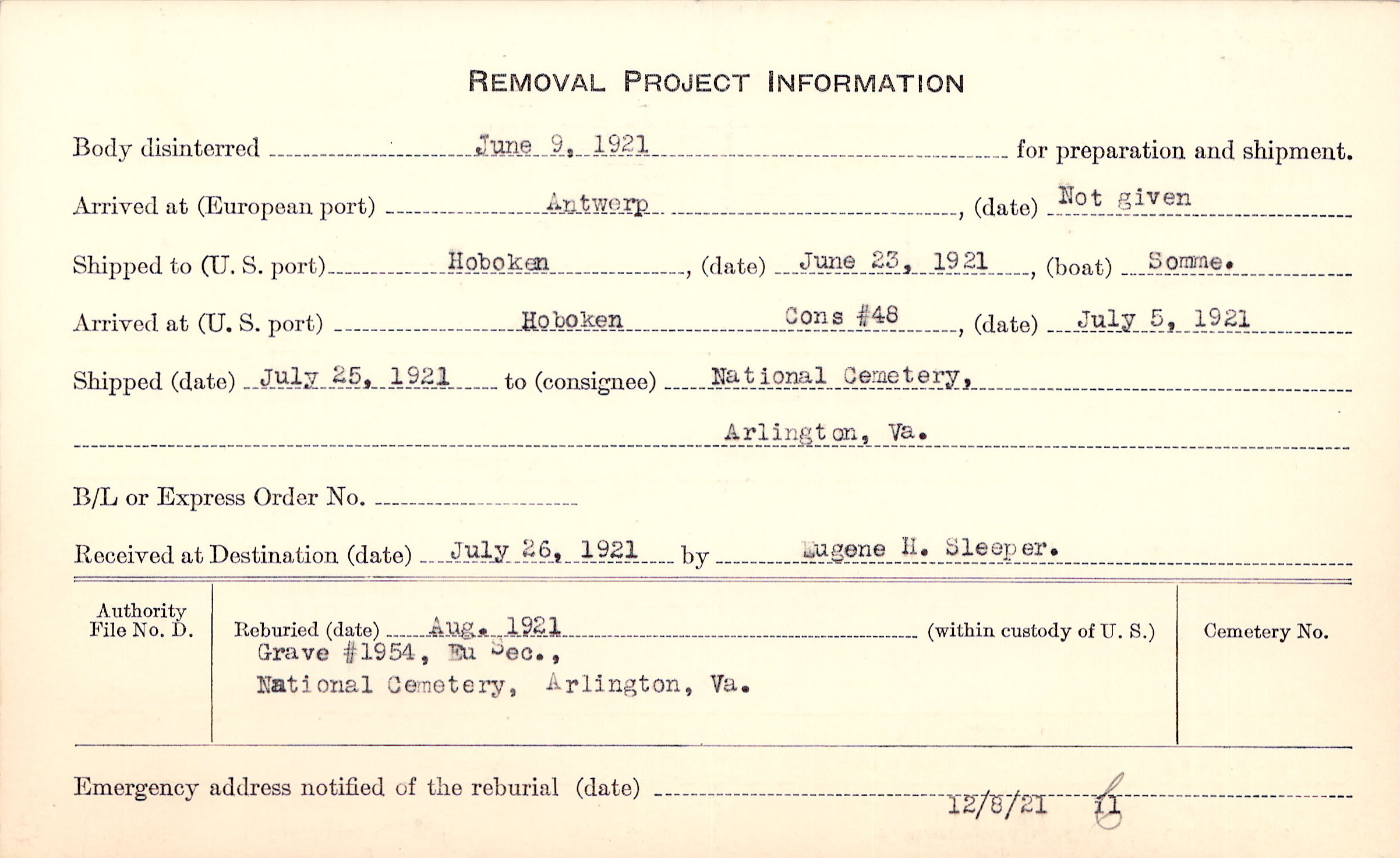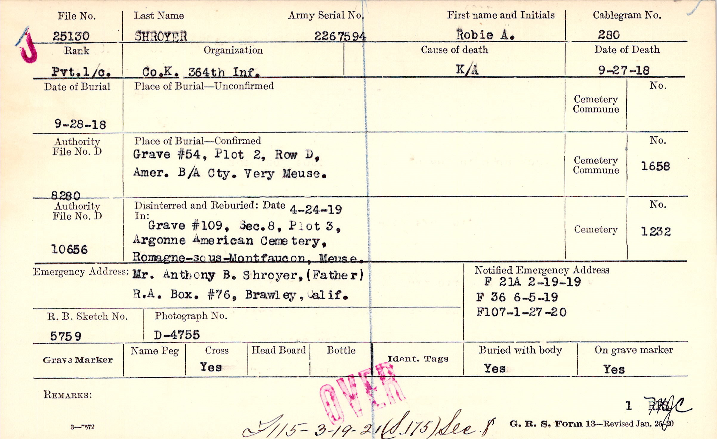 Grave 109, Section 8, Plot 3, Argonne American Cemetery, Romagne-sous-Montfaucon, Meuse