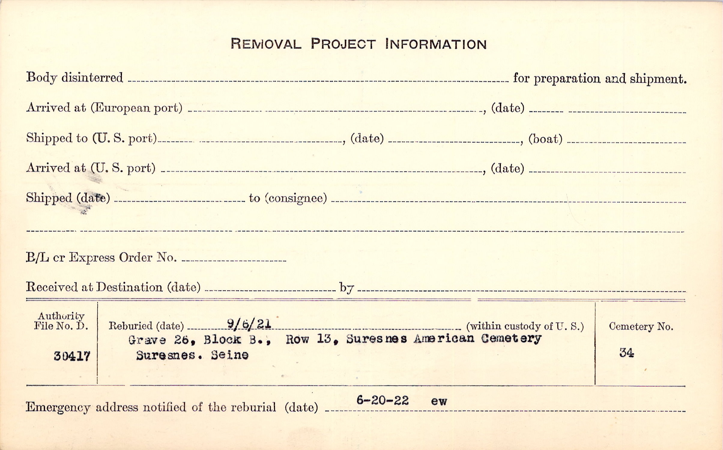 | Permanent Burial in Foreign Cemetery |