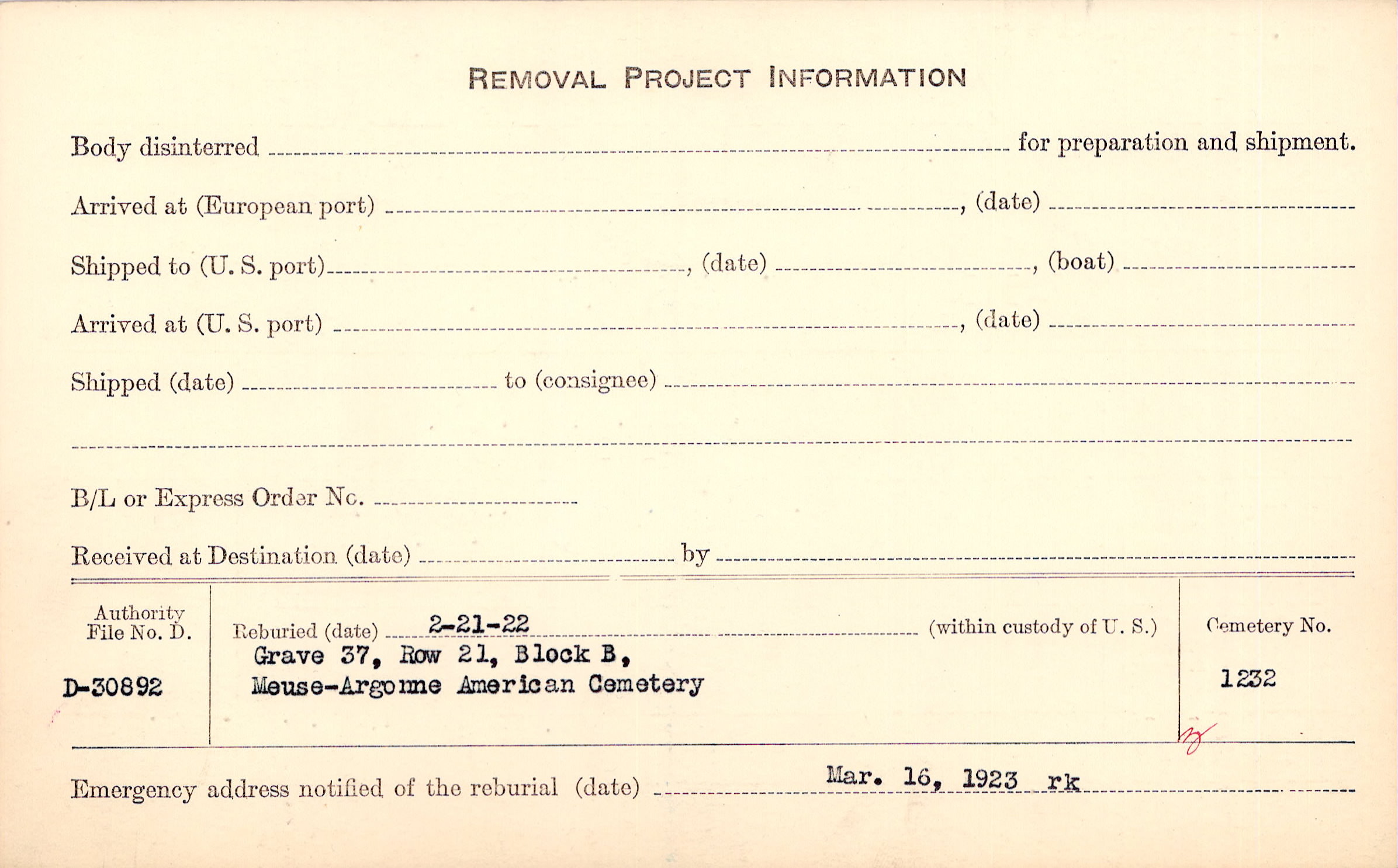 | Reburied (date): |