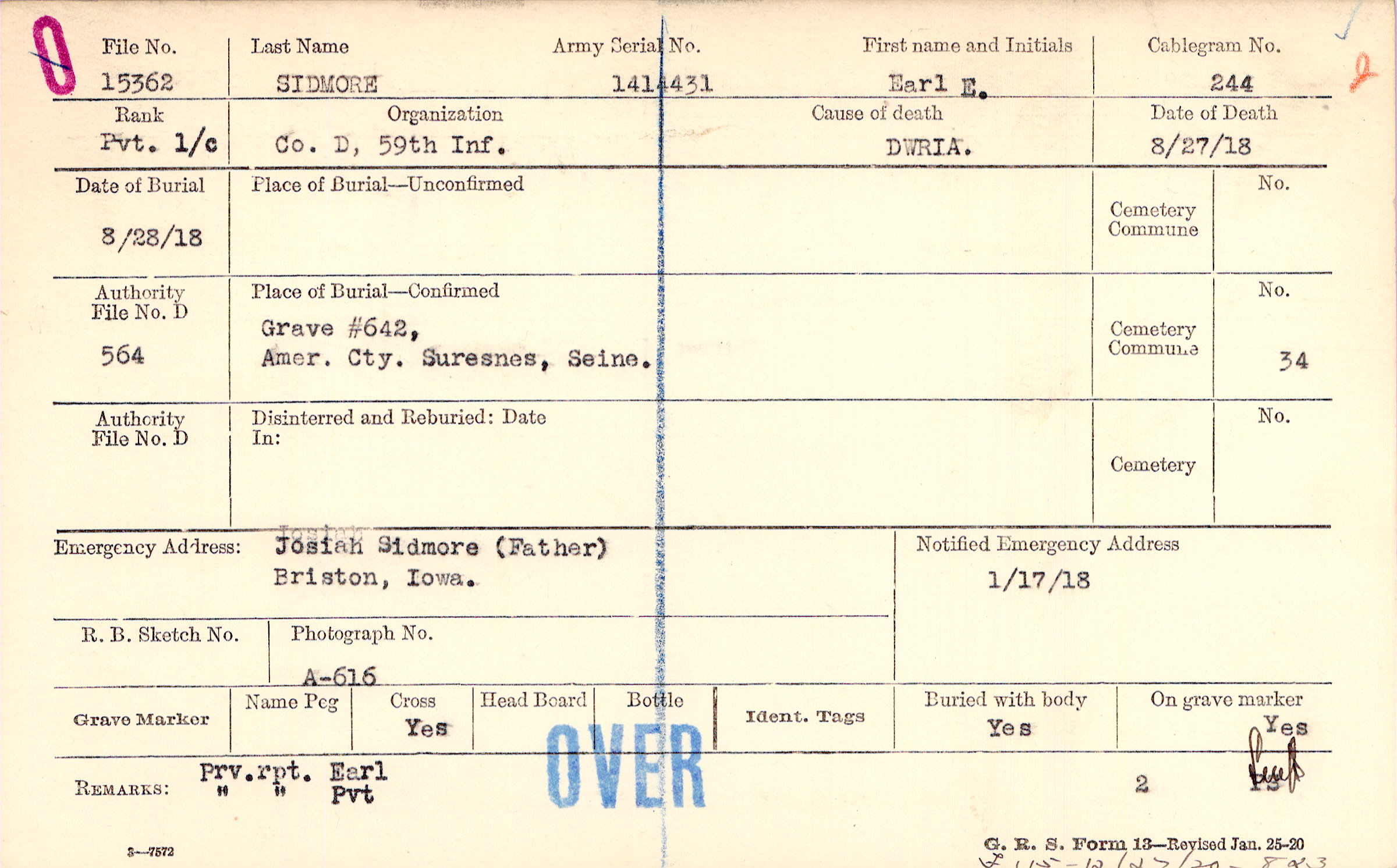 Grave #642, Amer. Cty., Suresnes, Seine