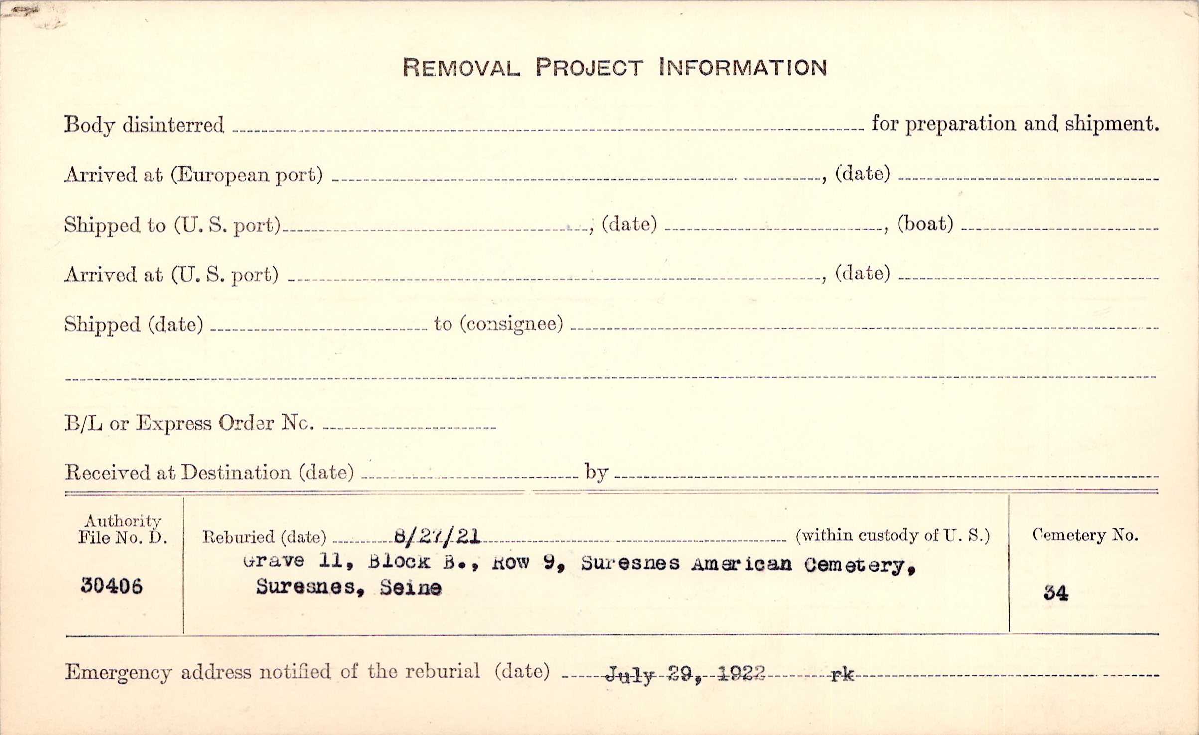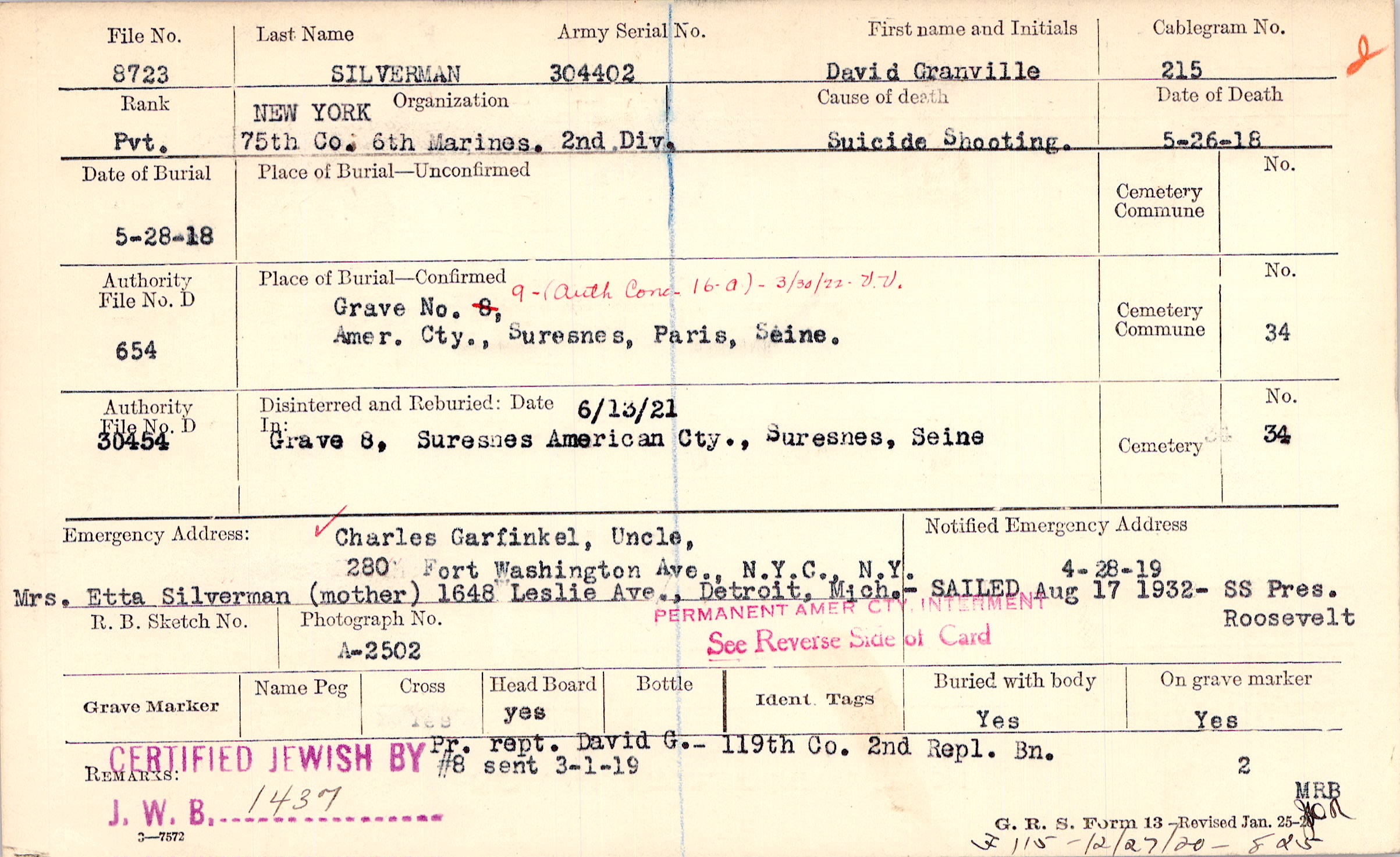 Grave 9, Amer. Cty., Suresnes, Paris, Seine.
