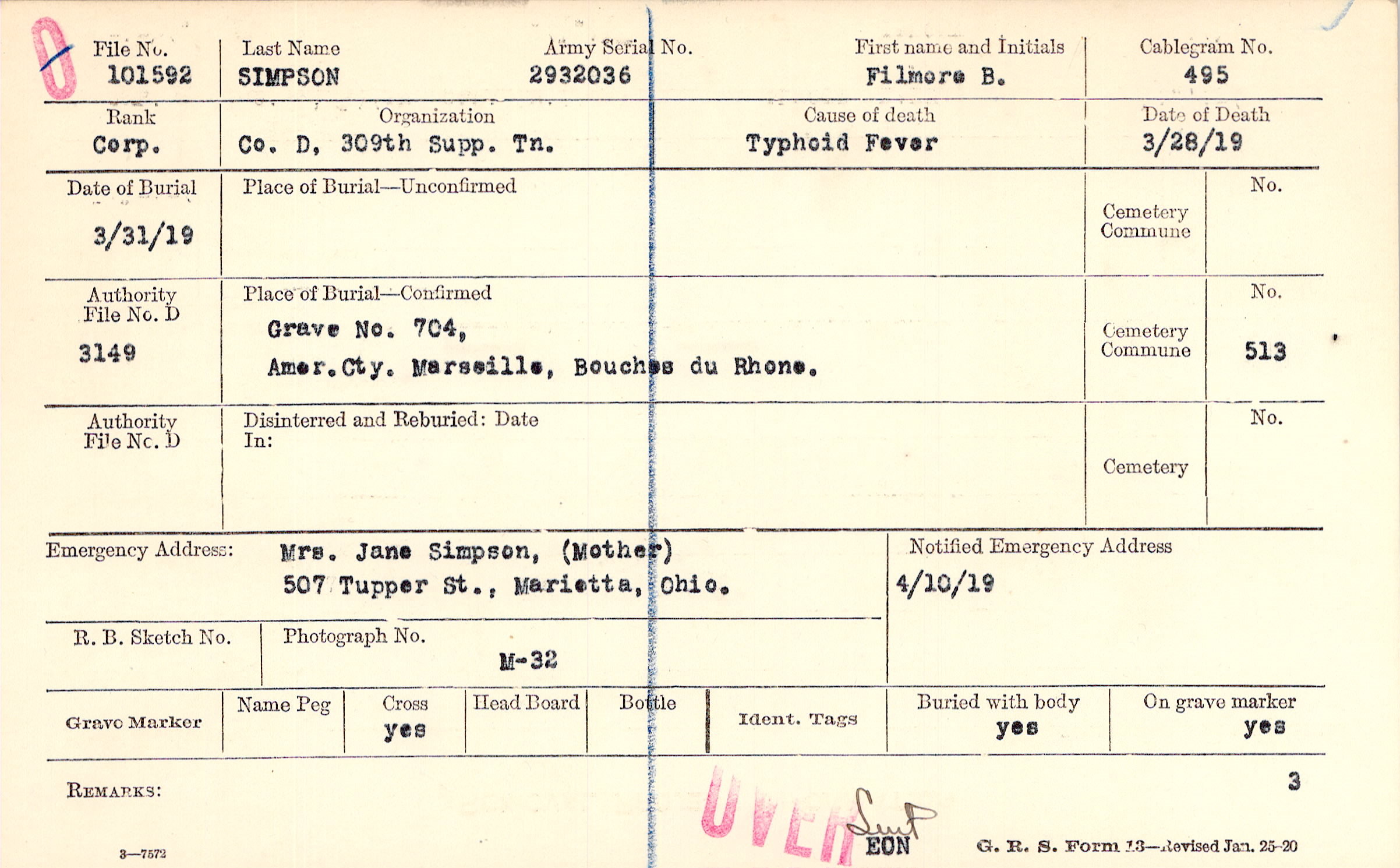 Mrs. Jane Simpson, (Mother), 507 Tupper St., Marietta, Ohio.