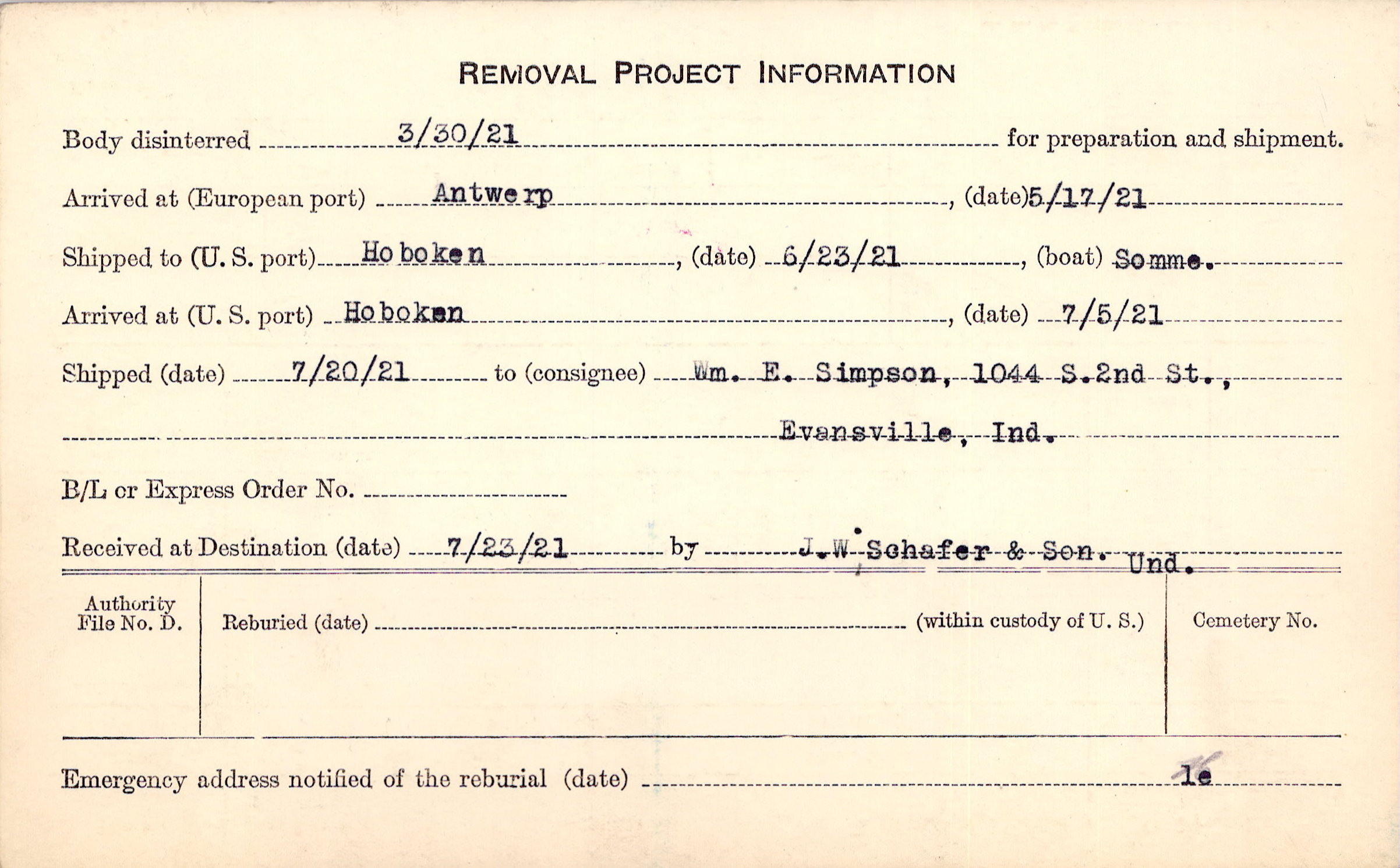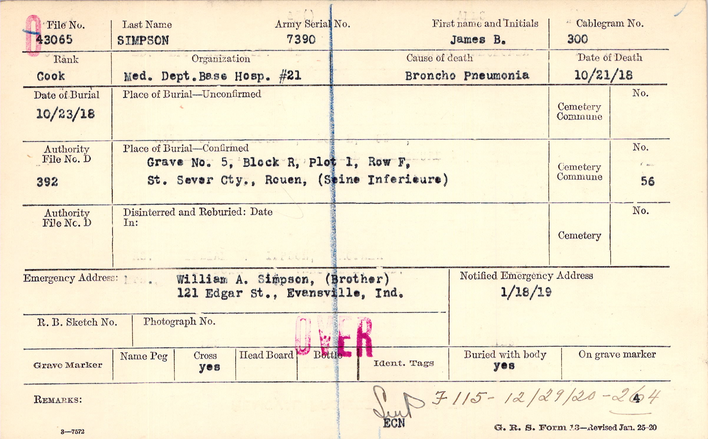 William A. Simpson, (Brother), 121 Edgar St., Evansville, Ind.