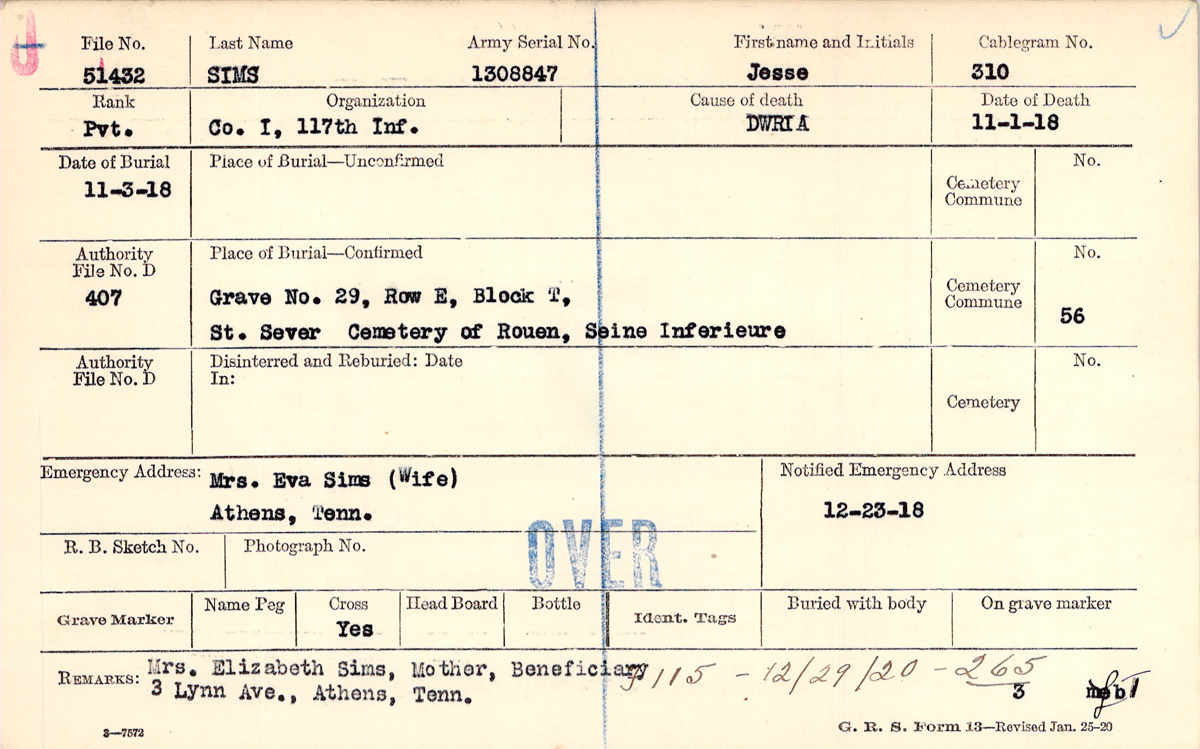 Mrs. Eva Sims (Wife), Athens, Tenn.