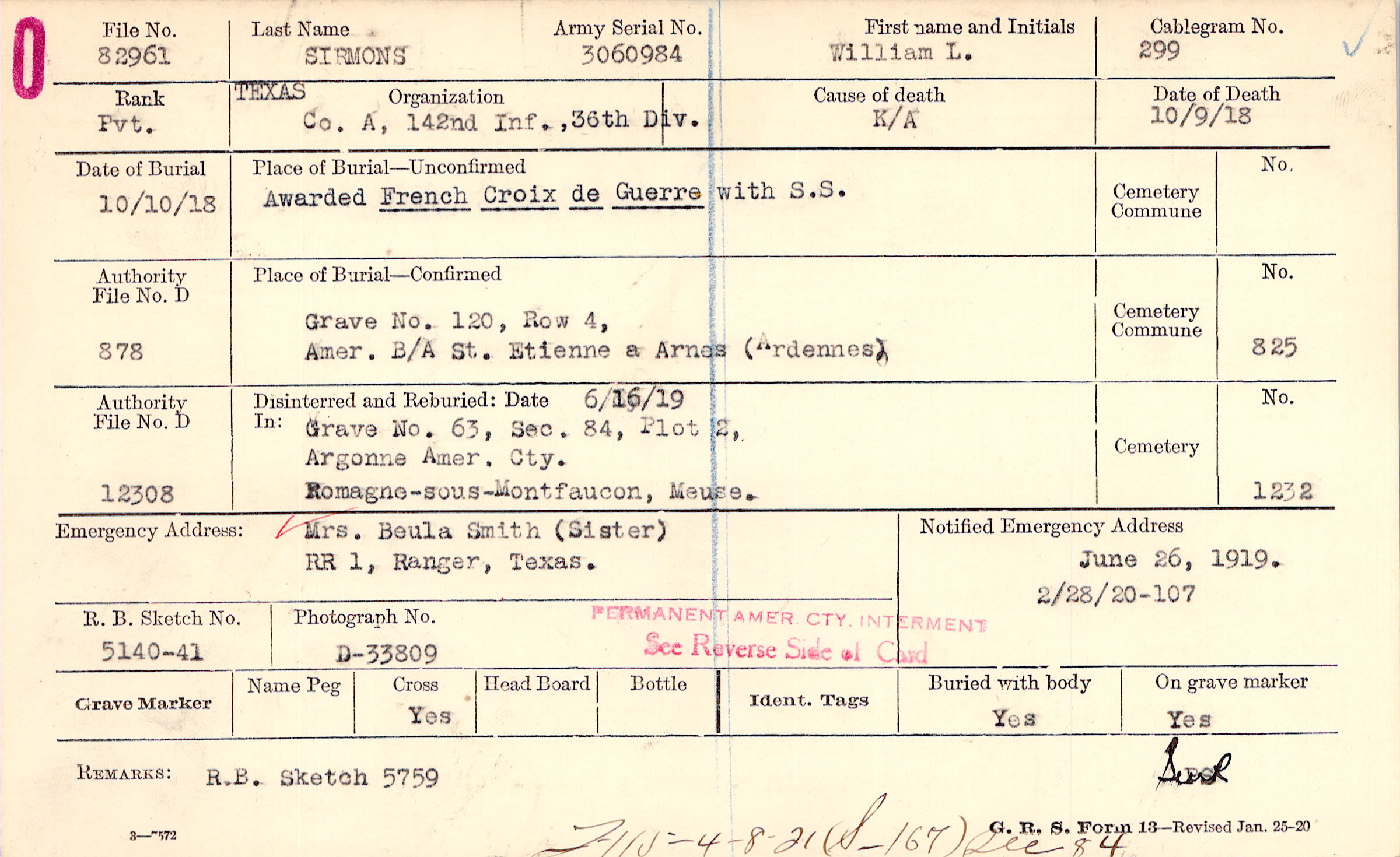 Grave 120, Row 4, Amer. B/A, St. Etienne a Arnes, Ardennes