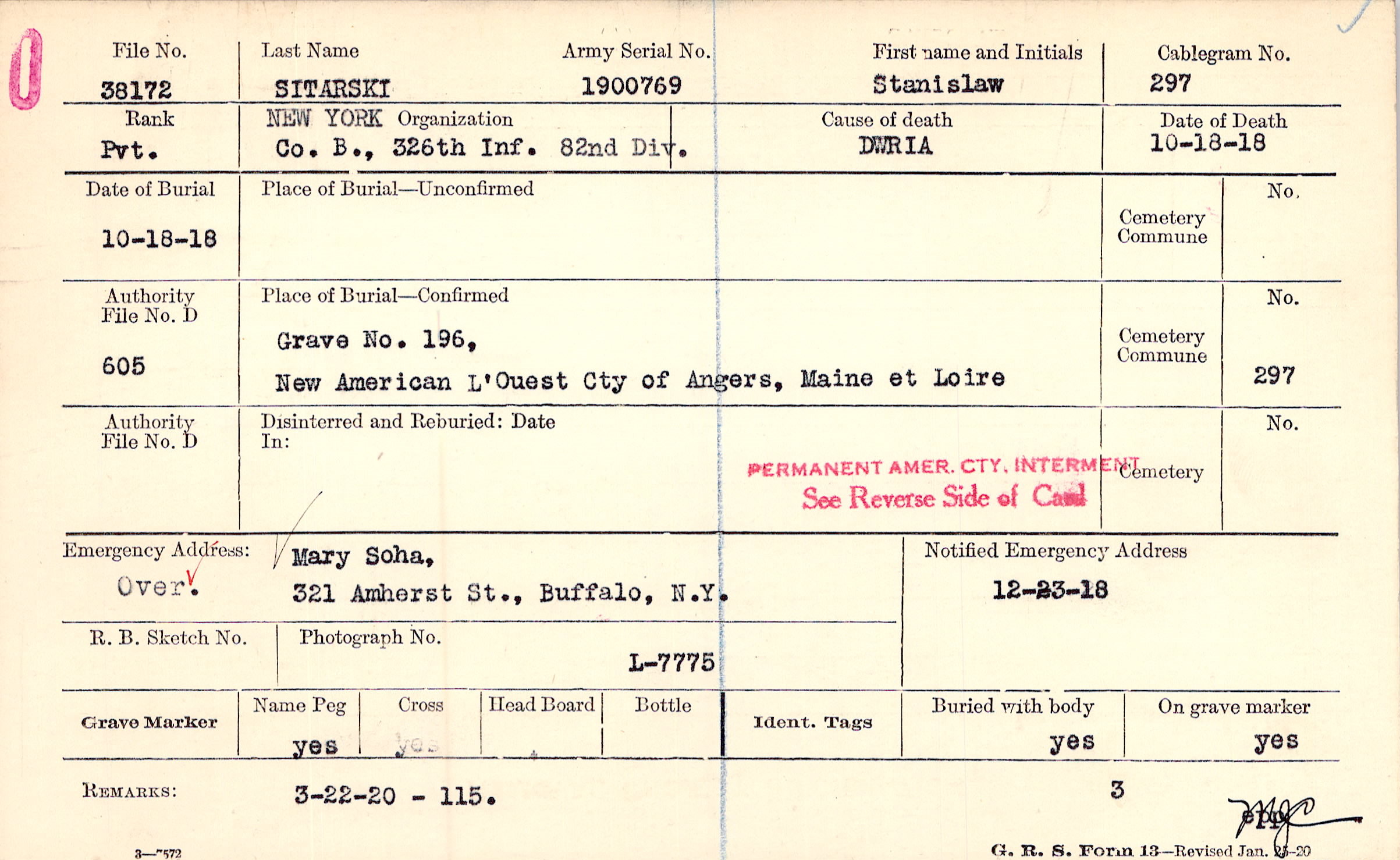 Prior Burial in Foreign Cemetery |