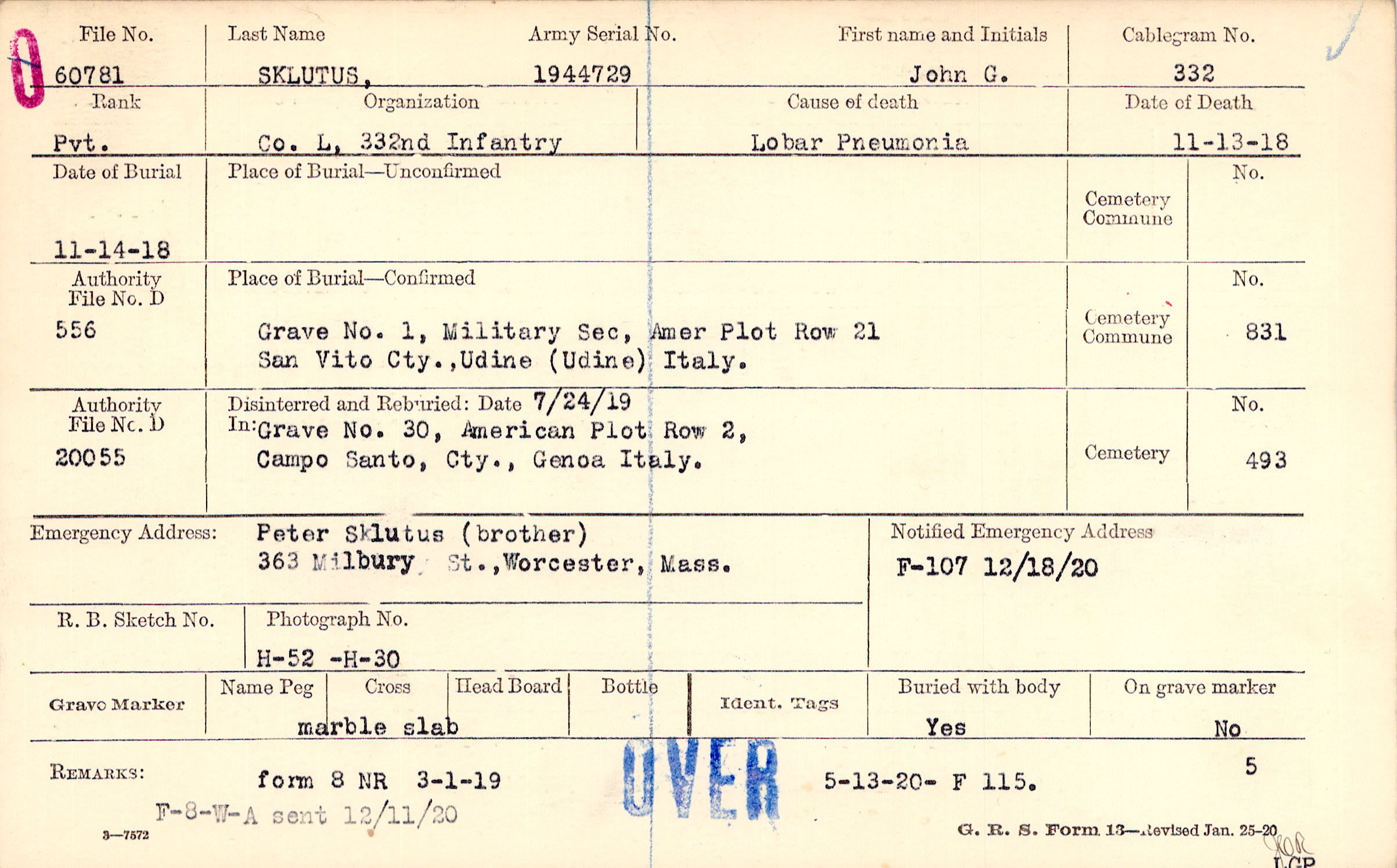 Peter Sklutus (brother), 363 Milbury St., Worcester, Mass.