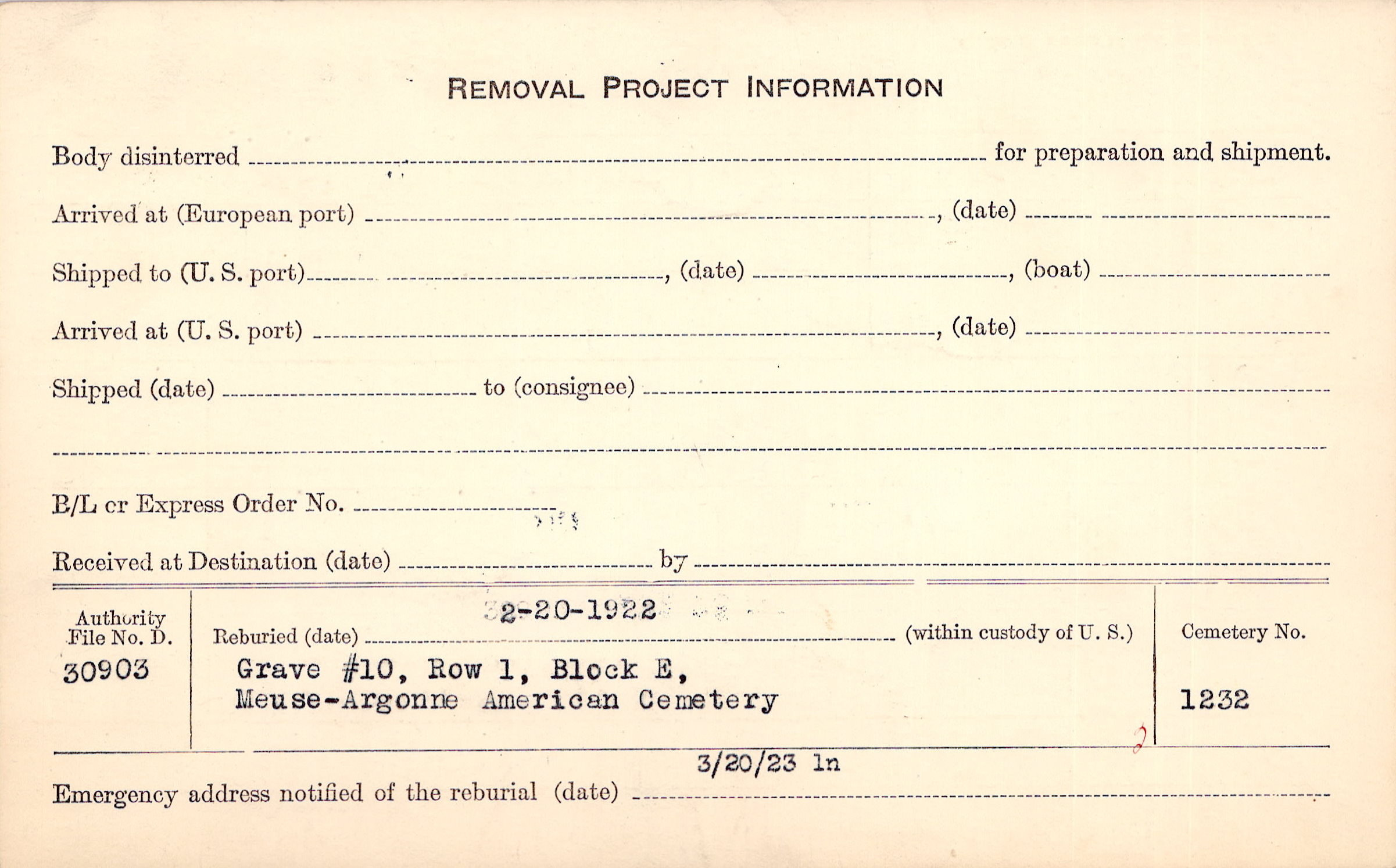 Grave 9, Amer. B/A Cty., Exermont, Ardennes.