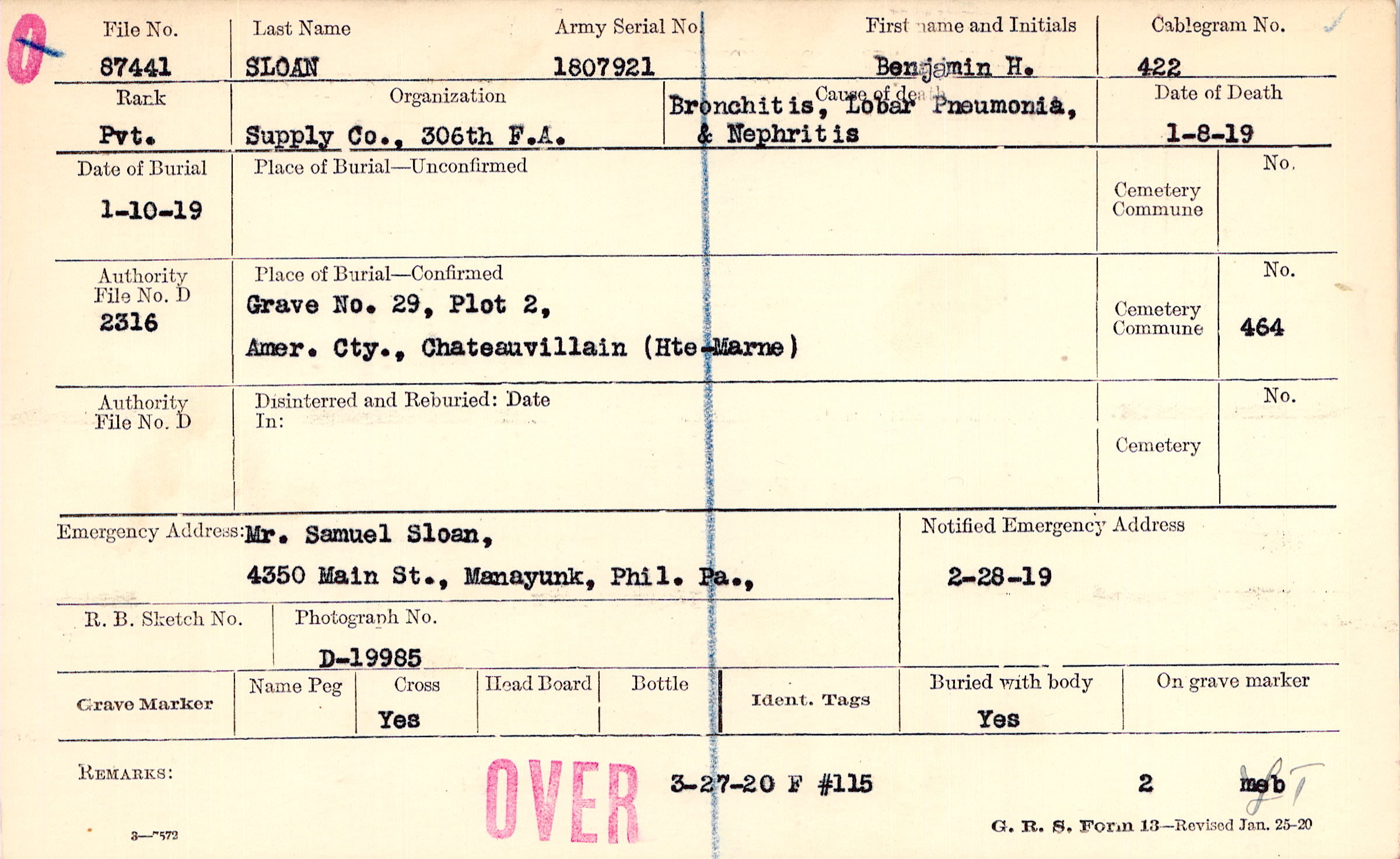 Grave 29, Plot 2, Amer. Cty, Chateauvillain, (Hte-Marne)