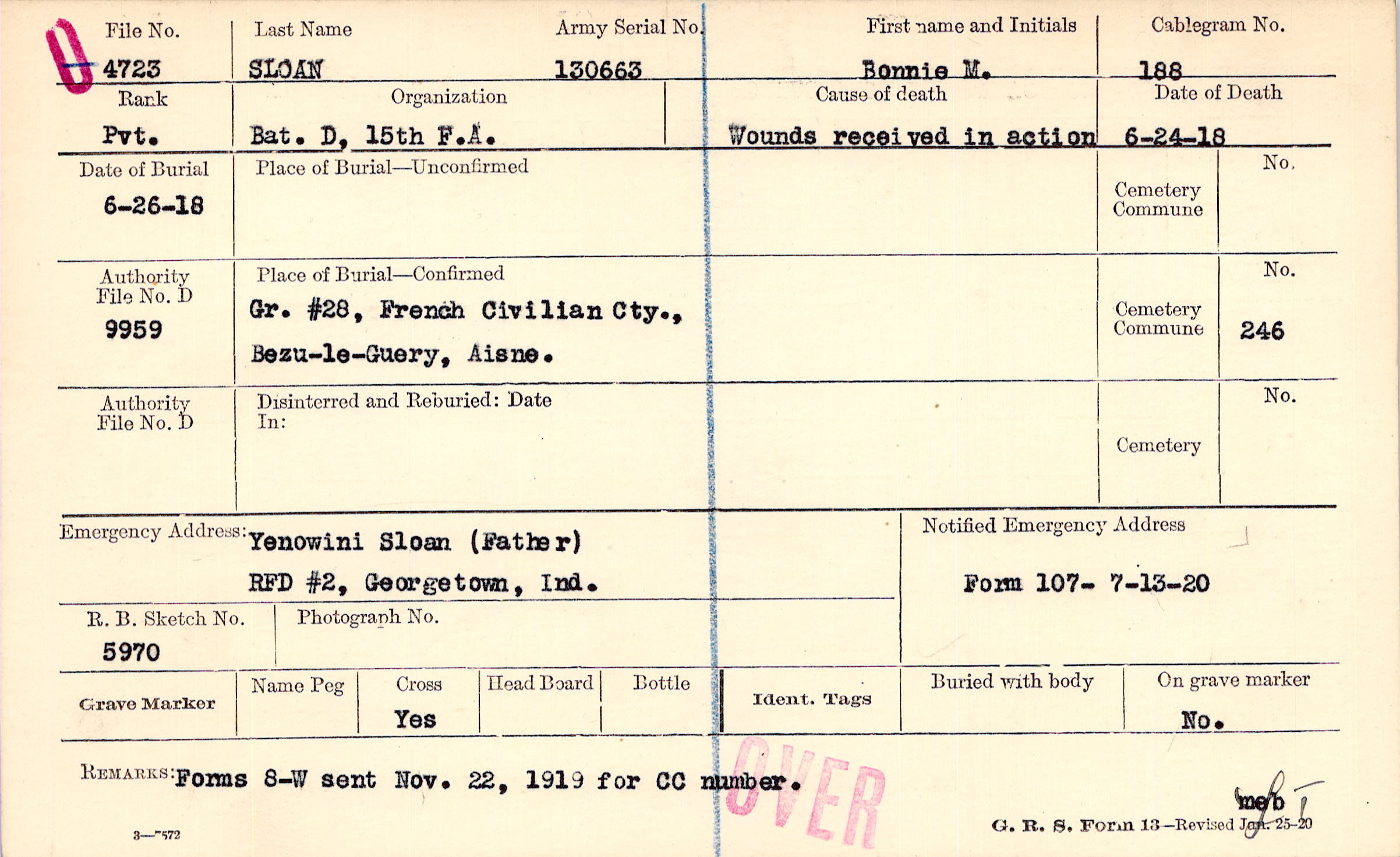 Yenowini Sloan (Father), RFD #2, Georgetown, Ind.