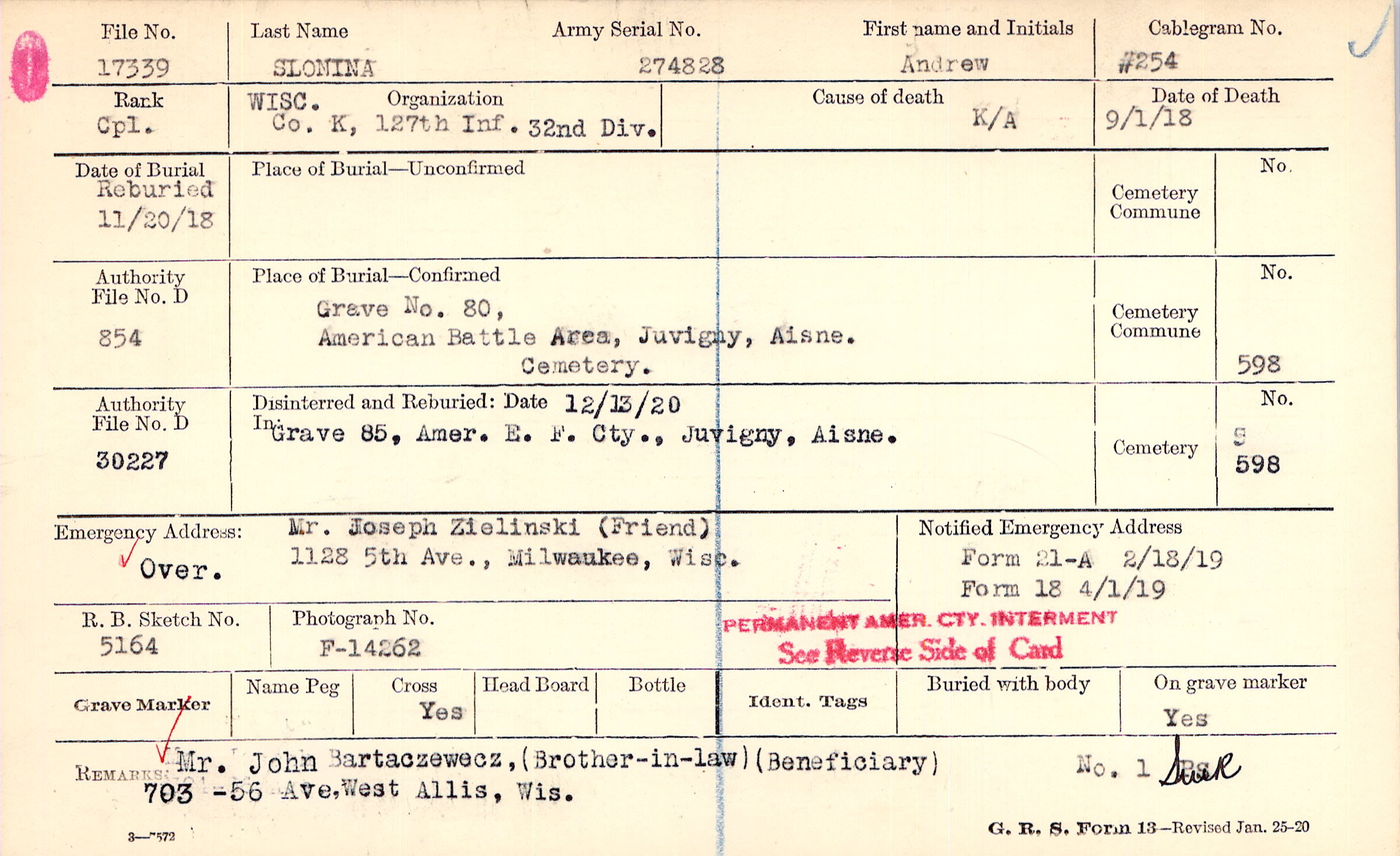 Grave 80,American Battle Area, Juvigny, Aisne. Cemetery.