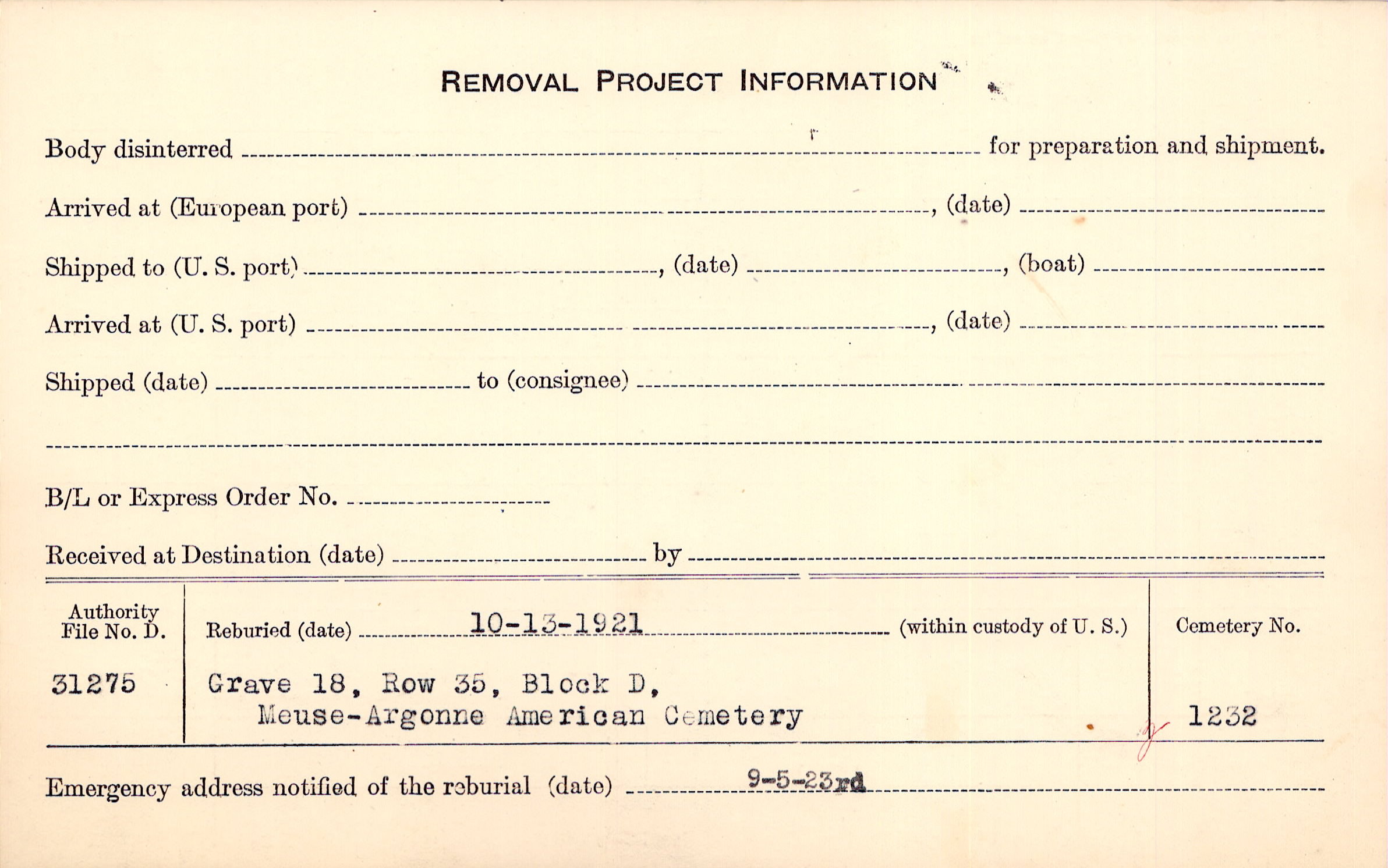 Grave 106, Section 61, Plot 3, Argonne American Cemetery, Romagne-sous-Montfaucon, Meuse