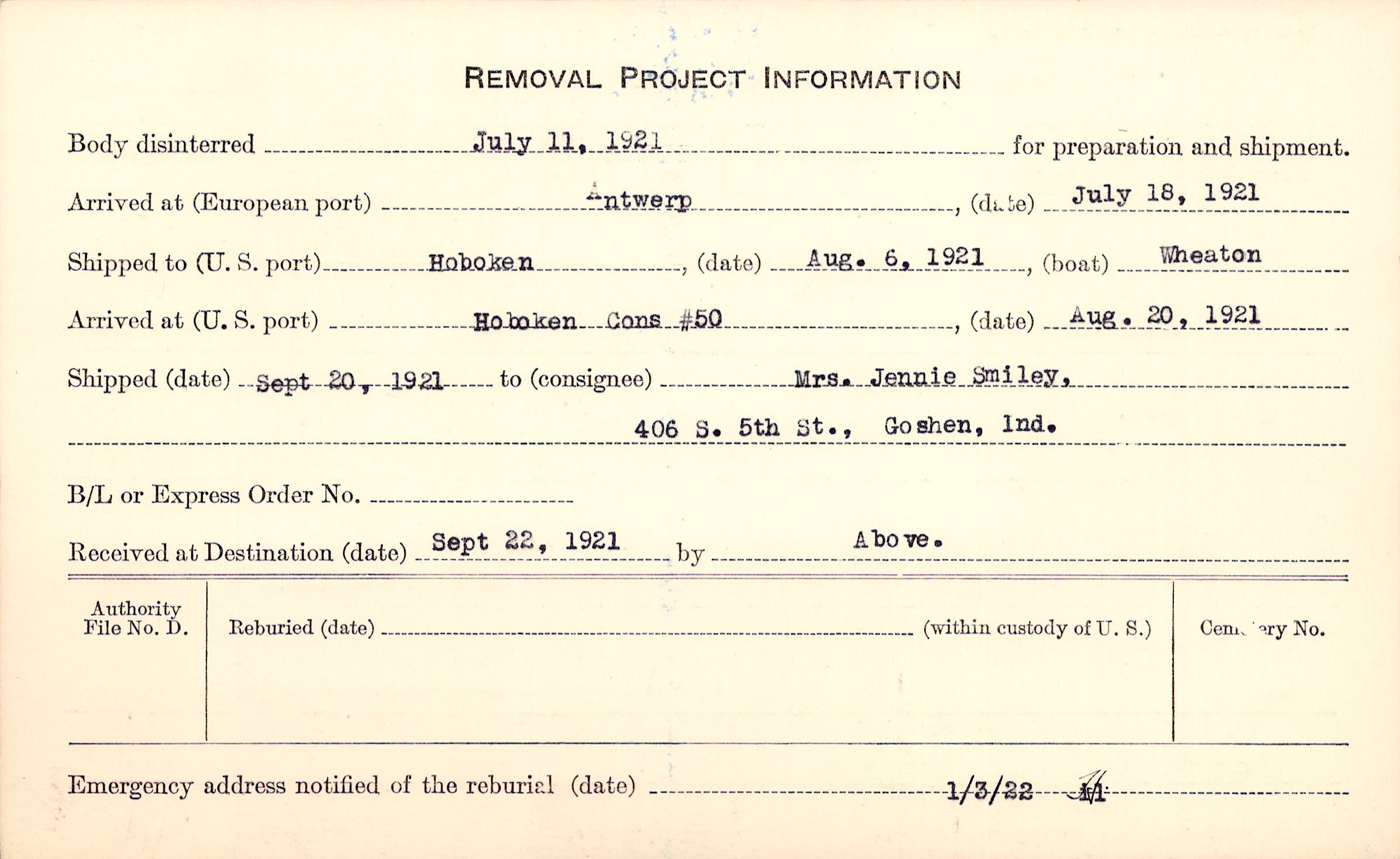 Mrs. Jennie Smiley, Mother, 406 S. 5th St., Goshen, Ind.