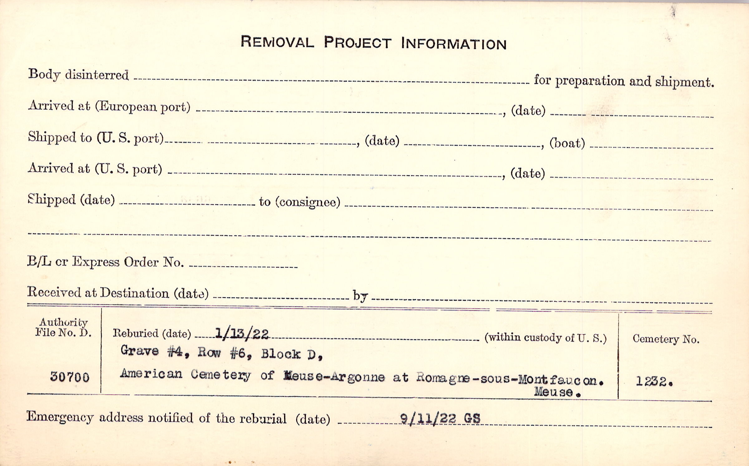 Grave 104, Section 27, Plot 2, Argonne American Cemetery, Romagne-sous-Montfaucon, Meuse