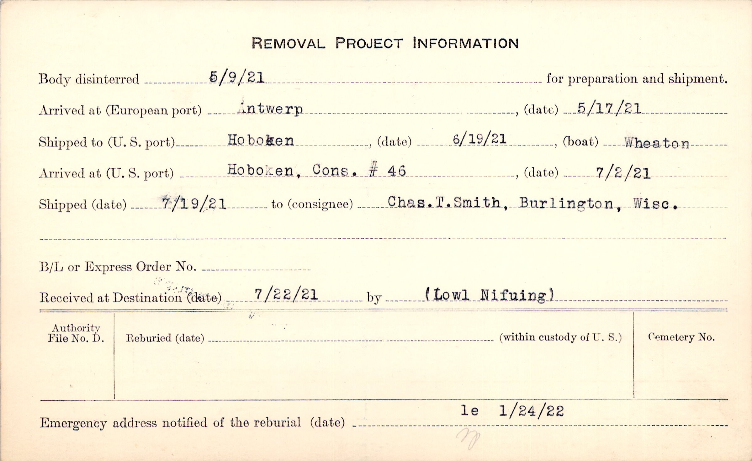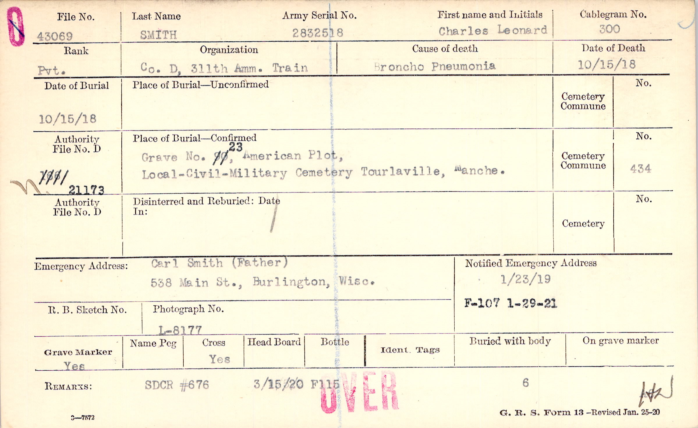 Carl Smith (Father), 538 Main St., Burlington, Wisc.