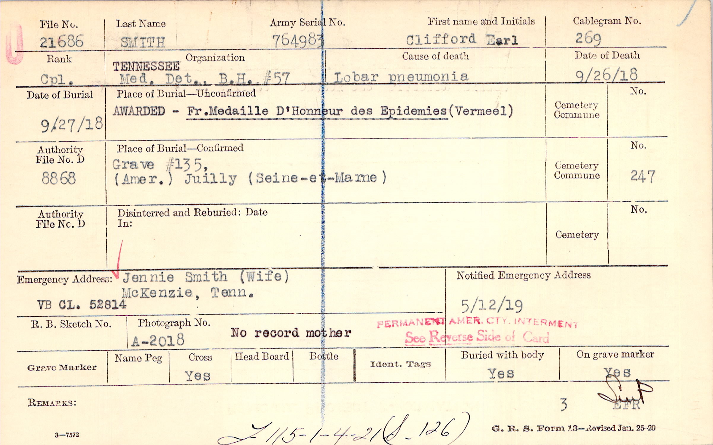 Jennie Smith (Wife), McKenzie, Tenn., VB CL. 52814