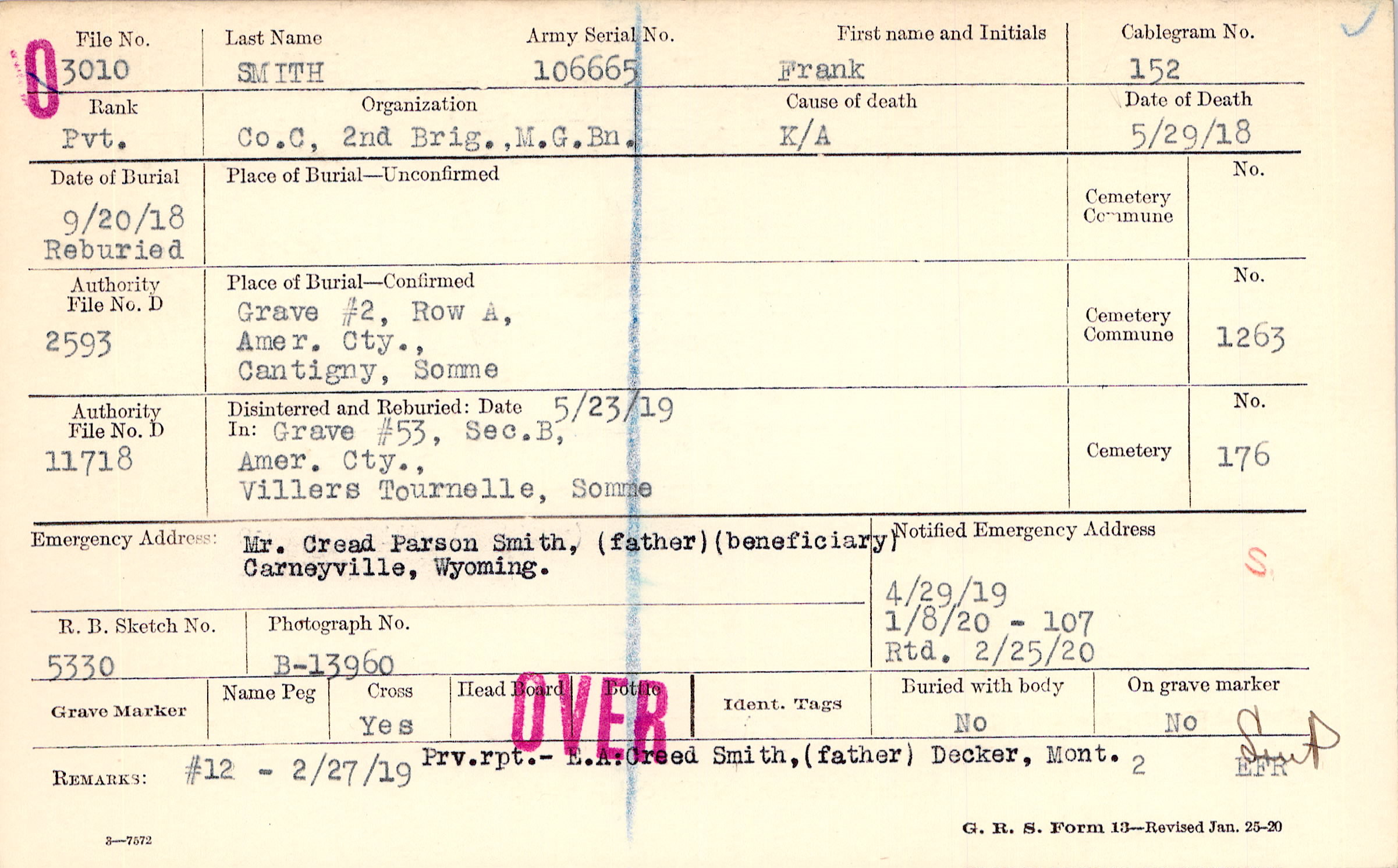 4/29/1919, Form 107: 1/8/1920, Rtd 2/25/1920