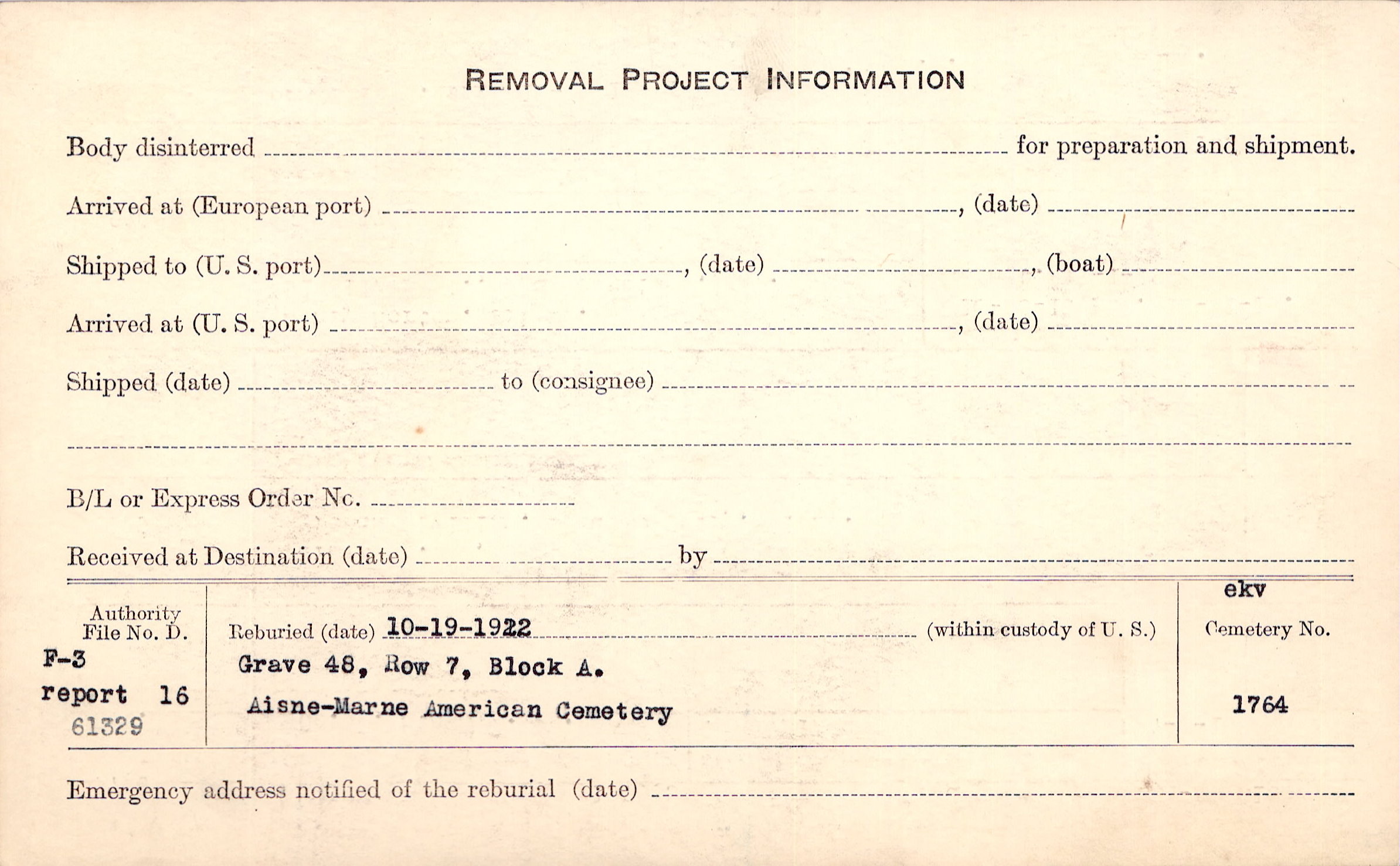 | Permanent Burial in Foreign Cemetery |