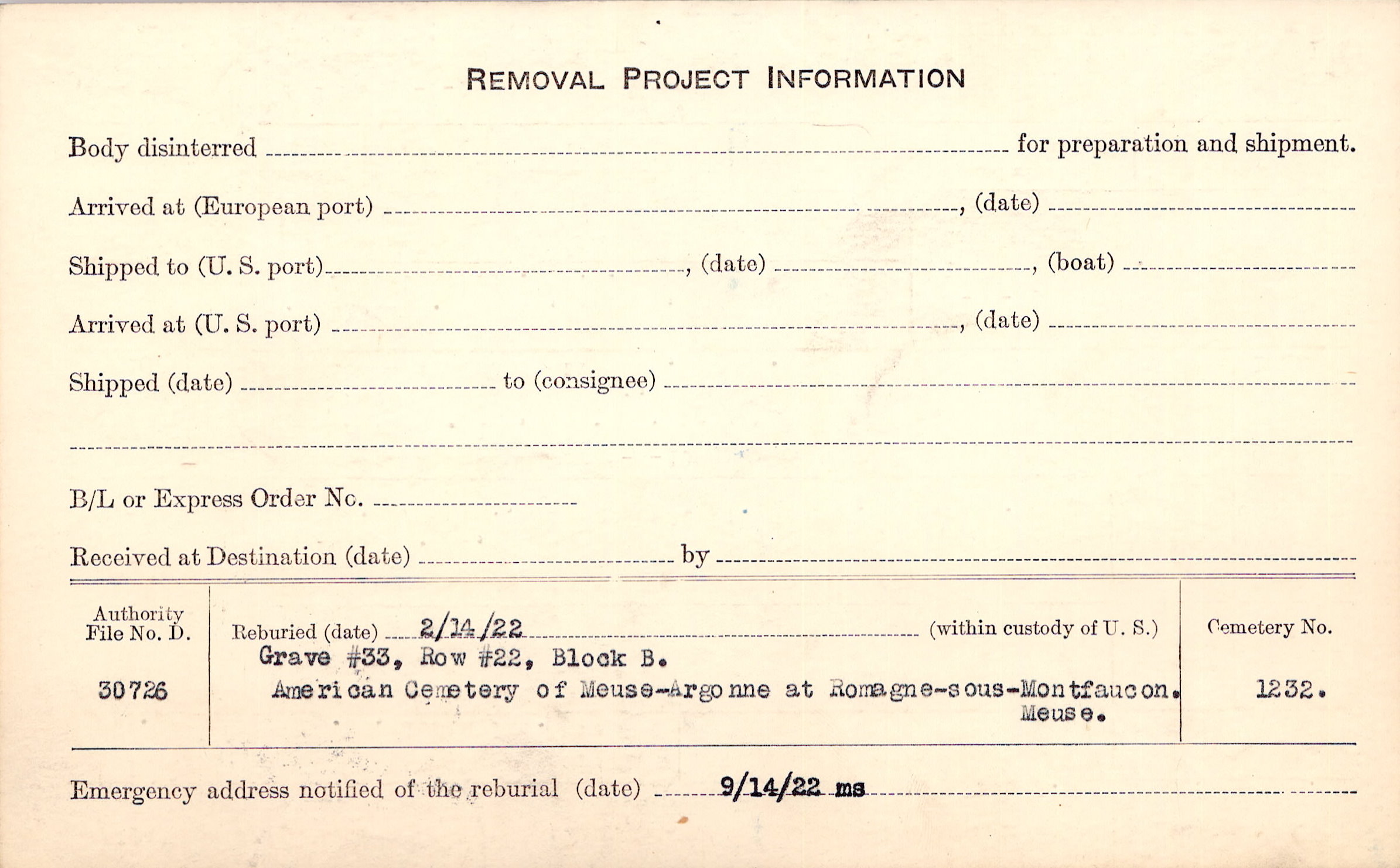 | Permanent Burial in Foreign Cemetery |