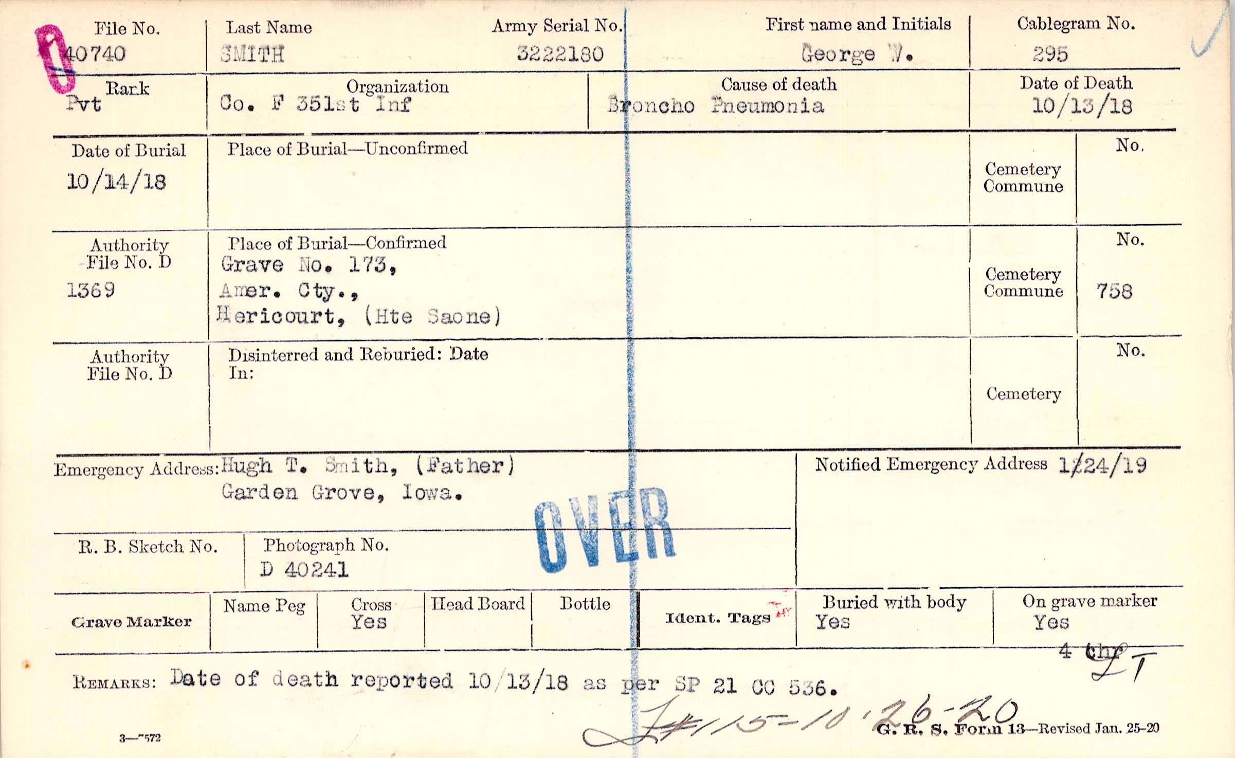 Grave 173, Amer. Cty., Hericourt, (Hte Saone)
